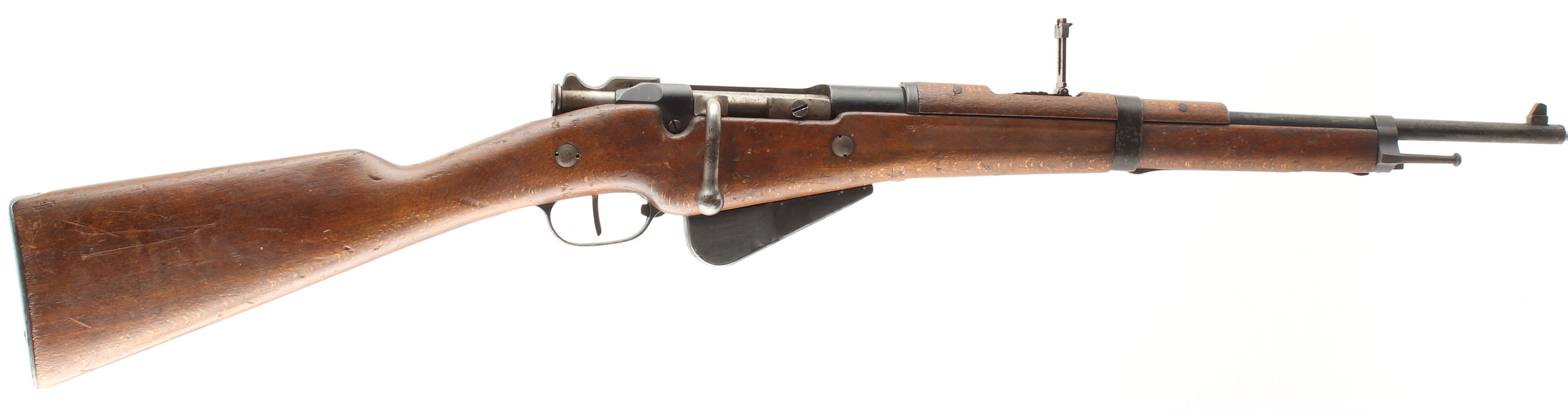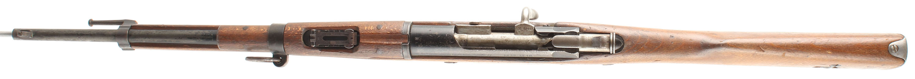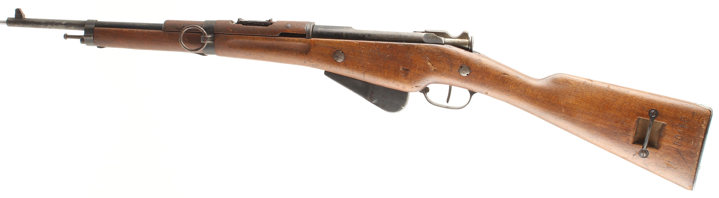 HISTORY: The Berthier was designed as a replacement for the aging single shot black powder Gras rifle that was being used by Mounted security forces, cavalry units, artillery units, & in colonial service. The French had the Lebel in the new smokeless 8mm round, but it had a tube magazine that ran the length of the barrel, therefore cutting them down created a problem with capacity. The new rifle was designed by Andre Virgile Paul Marie Berthier, a French civilian engineer in the Algerian railways. It used a three shot Mannlicher end-bloc clip, greatly increasing reload speed, particular convenience for cavalry and other mounted troops. The Lebel had to be single loaded instead of loading all at once, giving the Berthier a faster fire rate over the whole length of a battle, even though the Lebel held eight Rds., while the Berthier held three. The smaller capacity was chosen over the typical five rounds after field testing, where the cavalry expressed a preference for a non-protruding magazine that did not interfere with the balance or handling of the rifle. Because of the heavy taper of the 8mm Lebel cartisdge (essentially 11mm Gras necked down to 8mm & with smokeless powder) it could only have a three-shot magazine while being flushed fit. It was adopted on March 12, 1890 & designated the MLE 1890. The cavalry loved the carbine, & another version would be made specially for the Artillery troops which added a bayonet lug & changed the forend of the stock, this would be the MLE 1892. The MLE 1892 would be made clear to 1917, until production of its upgrade the MLE 1916 could start in May of 1917. The MLE 1916 added a five shot magazine & a handguard from the many complaints of use with front line troops. Production of both the 1890 calvary & 1892 Artillery would stop & the MLE 1916 Mousqueton would replace both. Older models would also be updated with the newer parts once they got sent back to a arsenal for repair, leading to rifles with a mix of parts & markings. The MLE 1892/M16 carbines were the only model of Berthier produced after WW1 with all other being discontinued, it would made till 1938. This gun is Ball N marked. This means it was modified to use the new Ball N cartridge. This new cartridge was tailored to long range, heavy machine guns having a heavier bullet & more powder. This results in more chamber pressure & the chambers of older rifles had to be modified to safely fire this new cartridge. The cartridge was developed in 1932 & all older weapons still French inventory from 1934 to 1939 were modified to the ball N chamber & marked ''N'' on the barrel or receiver. Firing Ball N ammo out of a non ''N'' marked gun is unsafe & shouldn't be done. A ball N marked gun is safe to fire N & Non-N 8mm Lebel out of. The metal is finish is a industrial black enamel paint called ''Parcosel'' or later ''Parkerization'' used during the interwar period on refurbished & new production rifles