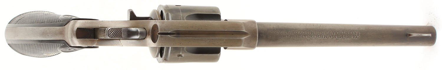 Colt, Model 1903 Navy, CAL: 38 Long Colt, MFG: 1906, SN: 270268, DA/SA Revolver, 6'' Barrel. The checkered vulcanized rubber grips with Rampant Colt logos are excellent with minimal wear. There is a thin layer of applied brown finish on the gun. There is some non-factory blue in protected areas as well as some original blue visible on the left side of the trigger. The factory markings are relatively crisp & all legible. Bore is good, the rifling has thinned slightly & the bore has darkened with very light roughness throughout & a couple of small spots of deep pitting throughout. Mechanically poor, this firearm is not fully functional. The cylinder will occasionally fail to rotate when the hammer is drawn to the rear or the trigger is pulled (this happens more consistently when the firearm is pointed up). The cylinder latch moves rearwards when the hammer is drawn & falls forward with the hammer. This firearm requires some professional gunsmithing to function properly. A fixed front sight is integral to the barrel, a rear sight notch is cut into the frame. SOLD ''AS IS'' NO RETURNS. FFL or C&R Req. - Value: 200 to 600