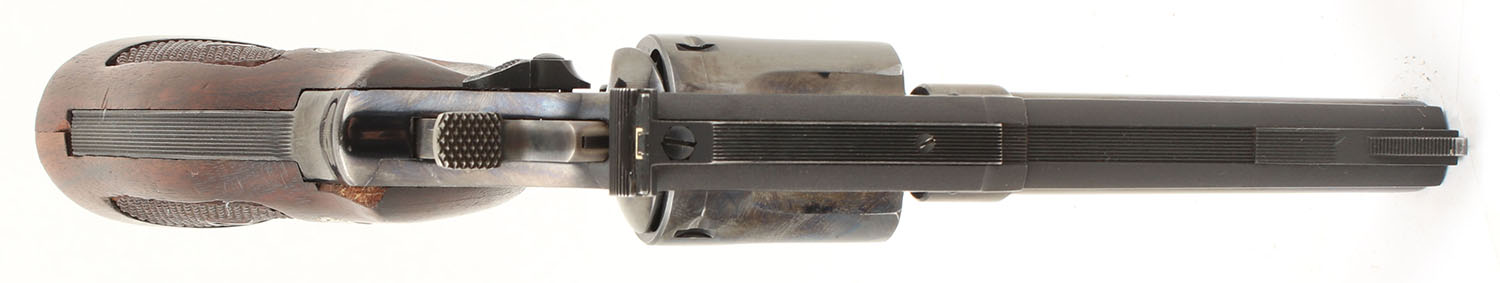 Smith & Wesson, Model 19-2, CAL: 357 MAG, MFG: 1965, SN: K650490, DA/SA Revolver, 4'' Barrel. The factory checkered wood grips with ''S&W'' Medallions are very good to excellent with a couple of edge chips on the bottom of the left grip panel & consistent surface scratches & dings throughout. The factory blued finish rates approximately 96% light use wear including a drag line & holster wear on the muzzle. There are a couple of small surface scratches on the gun as well as some edge wear & small scuffs. All of the standard markings around the gun are crisp. Bore is very good, near excellent, bright with strong rifling & light roughness concentrated near the muzzle. Mechanically solid, seems to function well. The barrel holds a serrated fixed front ramp sight. A windage & elevation adjustable rear sight with a white square ''U'' notch is mounted to the top of the frame. FFL or C&R Req. - Value: 600 to 1200