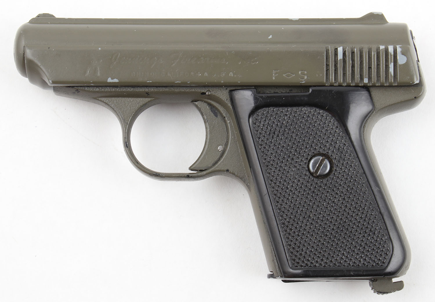 Jennings, J-22, CAL: 22LR, MFG: 1978-Present, SN: 077809, Semi Auto Pistol, 2 1/2'' barrel. The checkered synthetic grips are very good & solid, with visible light wear. There are minor scrapes & dings. The applied matte gray/green finish rates 90% overall, with some flaking. Bore is very good, bright, with visible wear from use. The safety has been removed from the gun (it was given to us in a bag & will be included), this may indicate some kind of mechanical issue. The gun seems to function as intended but should be inspected by a gunsmith before firing. Fixed square notch rear sight & low profile blade front sight. SOLD AS IS, NO RETURNS. FFL Req. - Value: 50 to 100