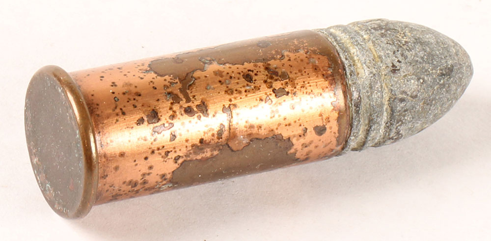 .58 Long Gatling Rimfire (1.33'' case), NHS, PT Lead. See Behling II, pg 104, #7. Grade Very Good. - Value: 70 to 150