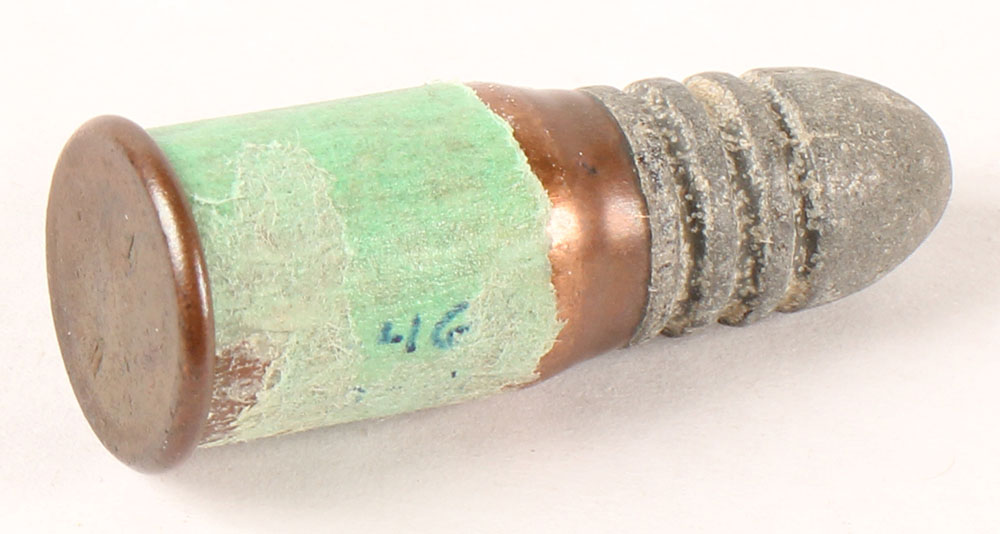 56-46 Spencer Rimfire (.90'' case). NHS, PT Lead. Two tick marks on case base. Possibly by CD Leet. See Behling II, pg 18 #6. Grade Very Good. - Value: 20 to 30