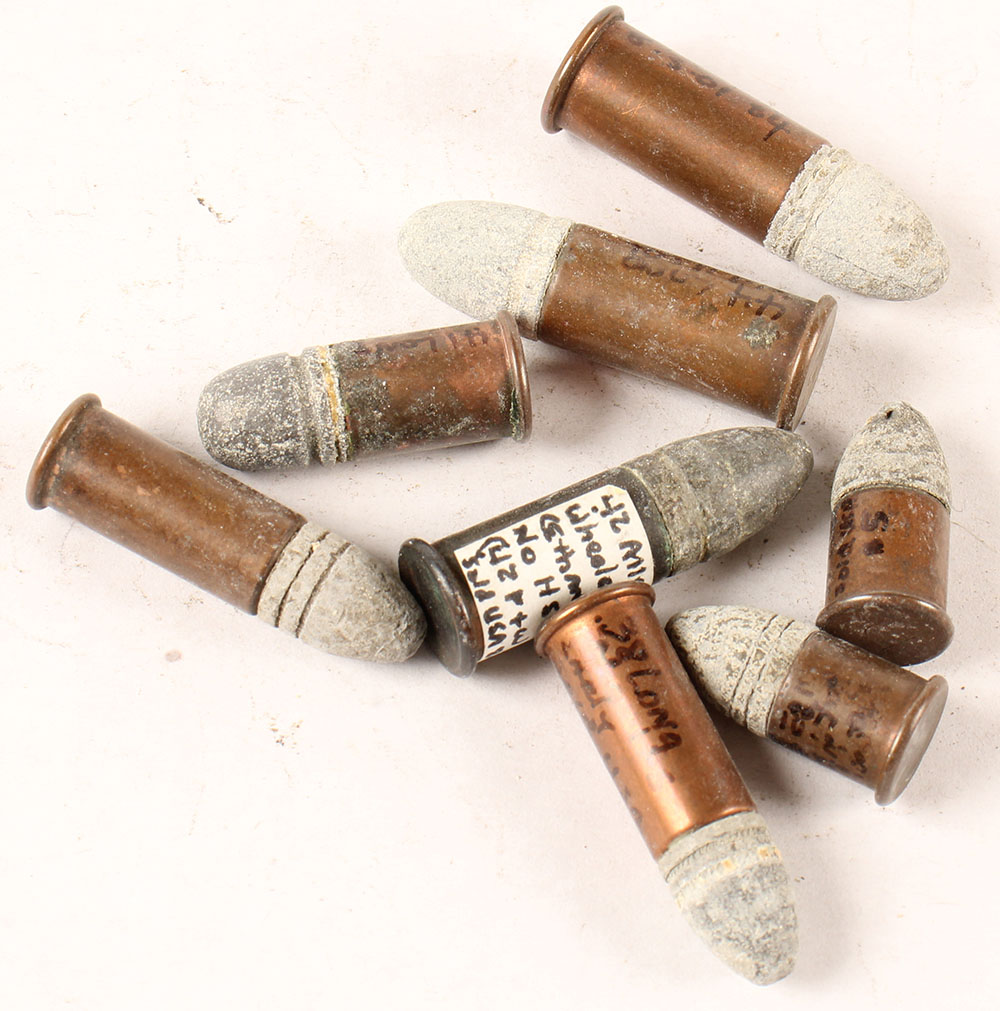 Lot of 8 Rim Fire Carts. 1 - 42 F/W with no h/s, 2 - 44 Long, 2 - 41 Short no h/s, 1 44 long Imp U, 2 38 Lont no h/s. Grade: Very Good ++ - Value: 20 to 50