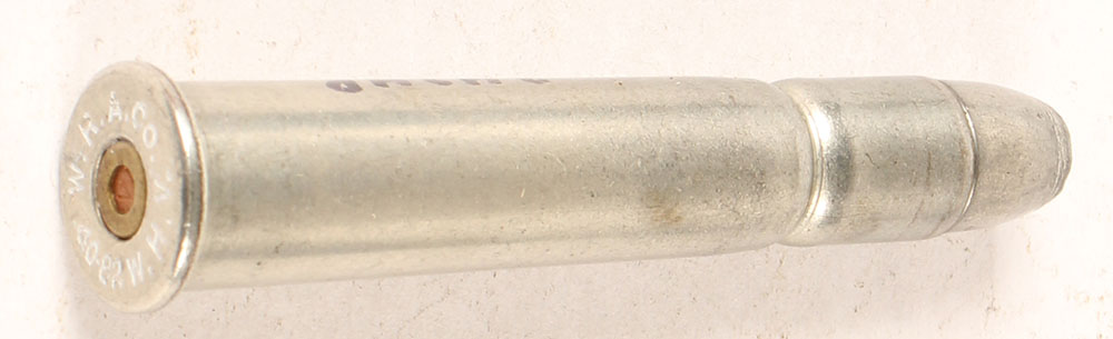 VERY RARE, 40-82 Winchester HV. HS:''W.R.A.Co. .40-82 W.H.V.'', FN Tinned SP. PROOF LOAD with tinned case, Protected Copper Primer with impressed ''W''. Very Rare. See Schuey II pg 37. Grade Very Good - Value: 200 to 400