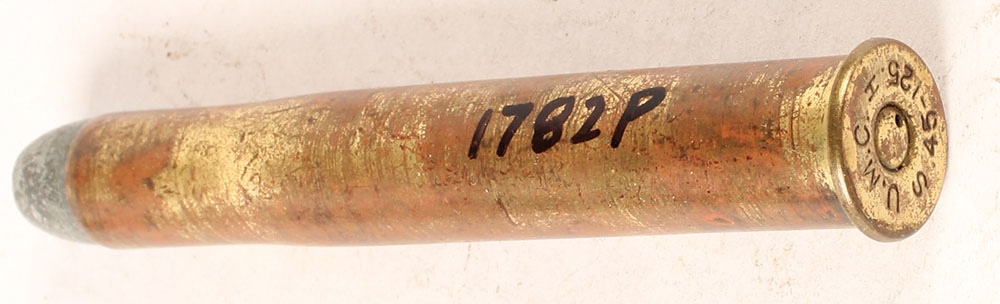.45 Winchester Express. HS:''U.M.C. H 45-125 S'', FN Lead with copper tube. FUNCTION DUMMY with one small hole in case and a small hole in the primer. Grade Very Good - Value: 40 to 80