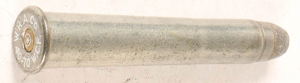RARE!, 40-70 Winchester (2.4 inch case), HS:''W.R.A.Co. 40-70 W.C.F.'', FN tinned SP, PROOF LOAD. Tinned Case, ''W'' on brass primer. RARE!. Grade Excellent - Value: 80 to 160