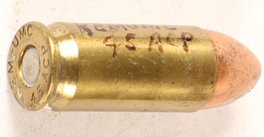 .45 Thompson (1.02'' case), HS:''REM-UMC 45 ACP'', PT CJ FMJ. Grade Excellent - Value: 20 to 40