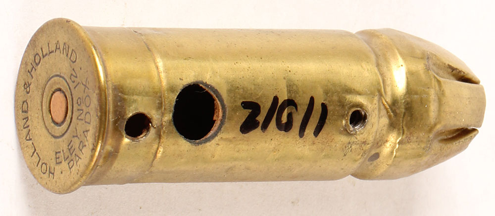 12 Gauge Paradox, HS:''HOLLAND & HOLLAND ELEY No 12 PARADOX'', Encased lead HP. Three non-factory holes in case. Grade Very Good ++ - Value: 20 to 40