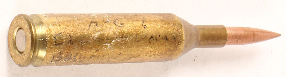 3.56x43 Cal,, .14 cases by F.A., loaded at A.P., bullet is a 10 cal Ogive, .222 Rem cases, FA experimental. Grade: Excellent - Value: 50 to 100