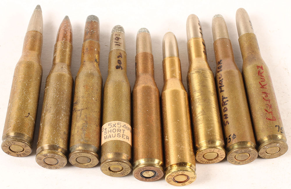 | Lot of 9, 6.5x54 Mauser. A collection of various headstamps and...