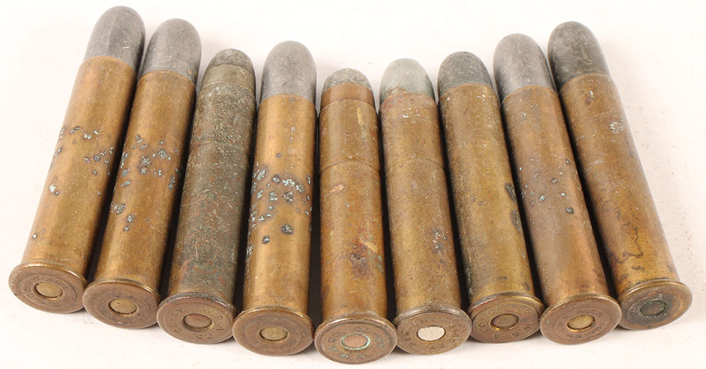 Lot of 9, .45-70 Govt. (8) HS'':''W.R.A.Co. 45-70'', 5--500 gr. RN Lead.. 1--.405 gr. RN Lead, 1-- FN CJ SP, 1--FN CN SP. (1) HS:''REM-UMC 45 GOVT., FN CN SP. Needs cleaned. Grade Very Good - Value: 20 to 40
