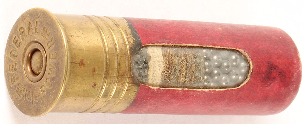 Window Shell, H/S ''Federal No 12 Hi-Power'', 2 1/2'' OAL, salesman sample in red paper case. Grade: Very Good ++ - Value: 10 to 50