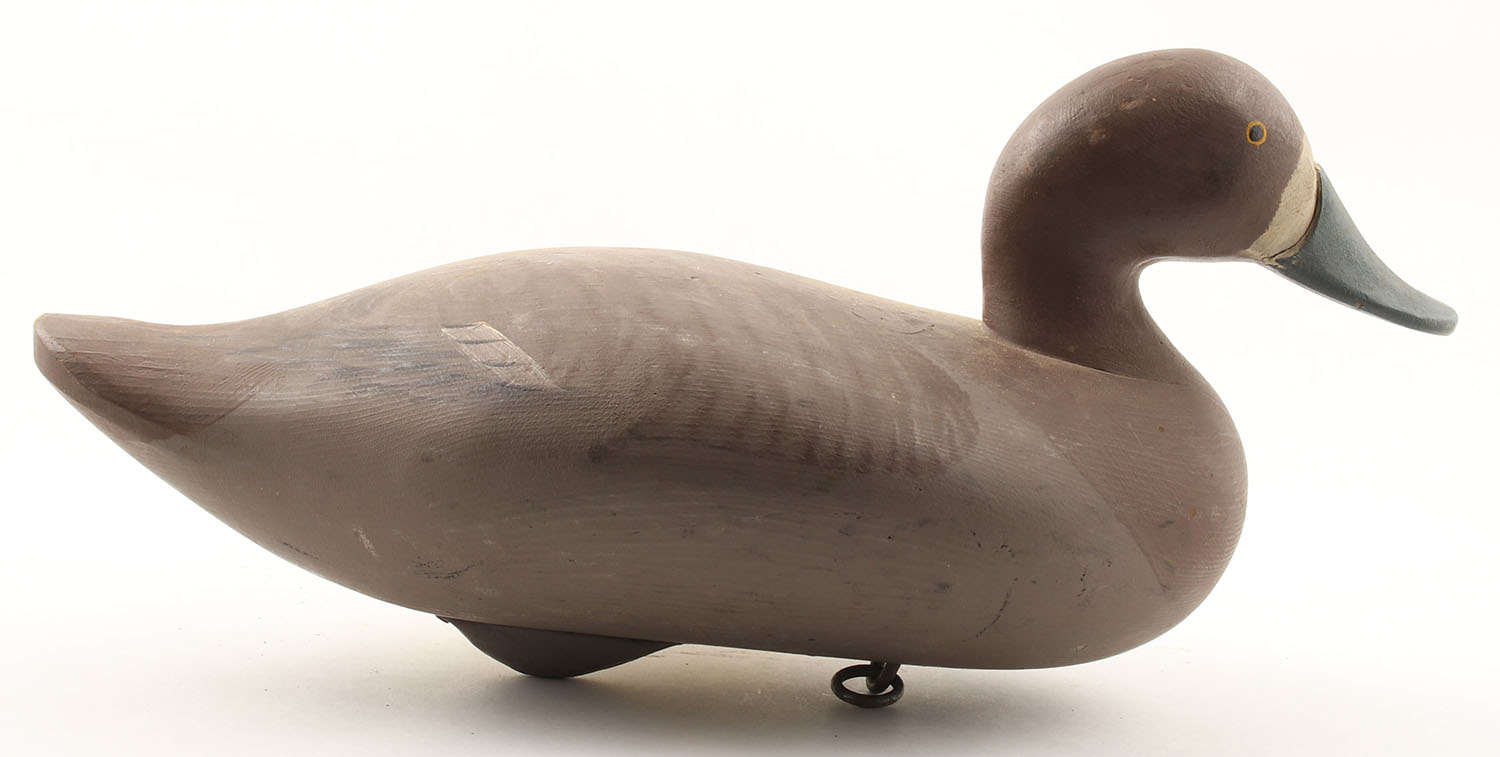 Bluebill Hen by Unknown Maker, MD, painted eyes, solid wood, original paint, structurally excellent, 14 3/4'' OAL. Grade: Excellent - Value: 40 to 80