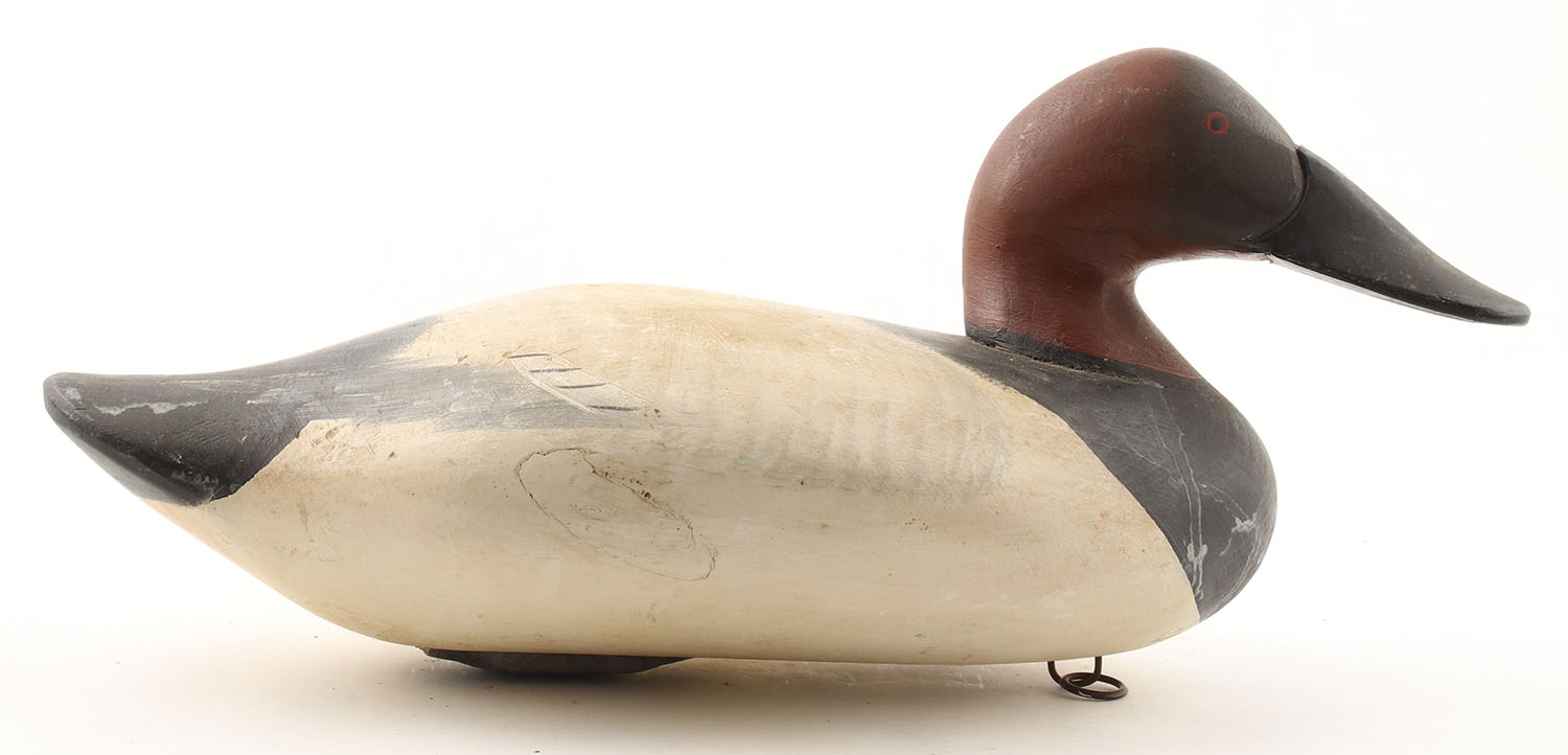 Canvasback Drake by Unknown Maker, painted eyes, solid wood, original paint, structurally excellent, 16'' OAL. Grade: Excellent - Value: 40 to 80