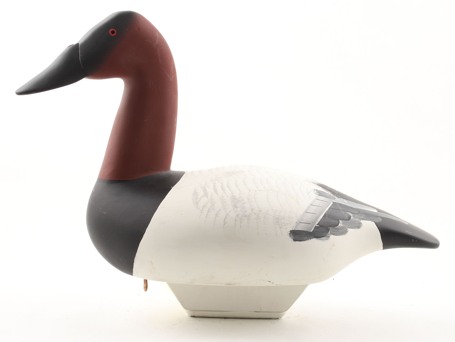 Canvasback Drake (with high neck) by Andy Zielinski, Chase, MD, 2019, painted eyes, solid wood, original paint, structurally excellent, signed on bottom, 17'' OAL. Grade: Excellent - Value: 50 to 150