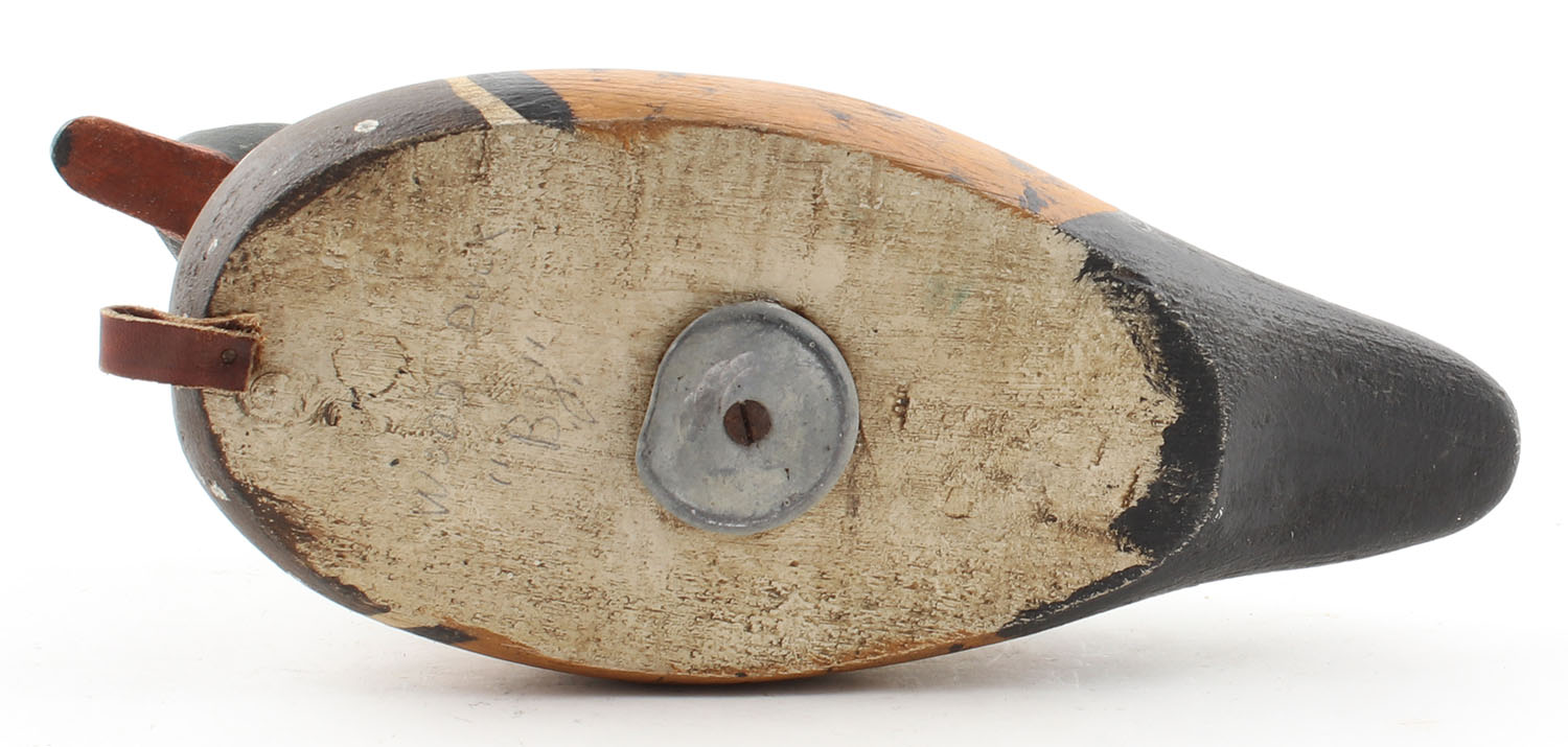 Woodduck Drake by Unknown Maker, glass eyes, solid wood, original paint, structurally excellent, 13 1/2'' OAL. Grade: Excellent - Value: 30 to 60