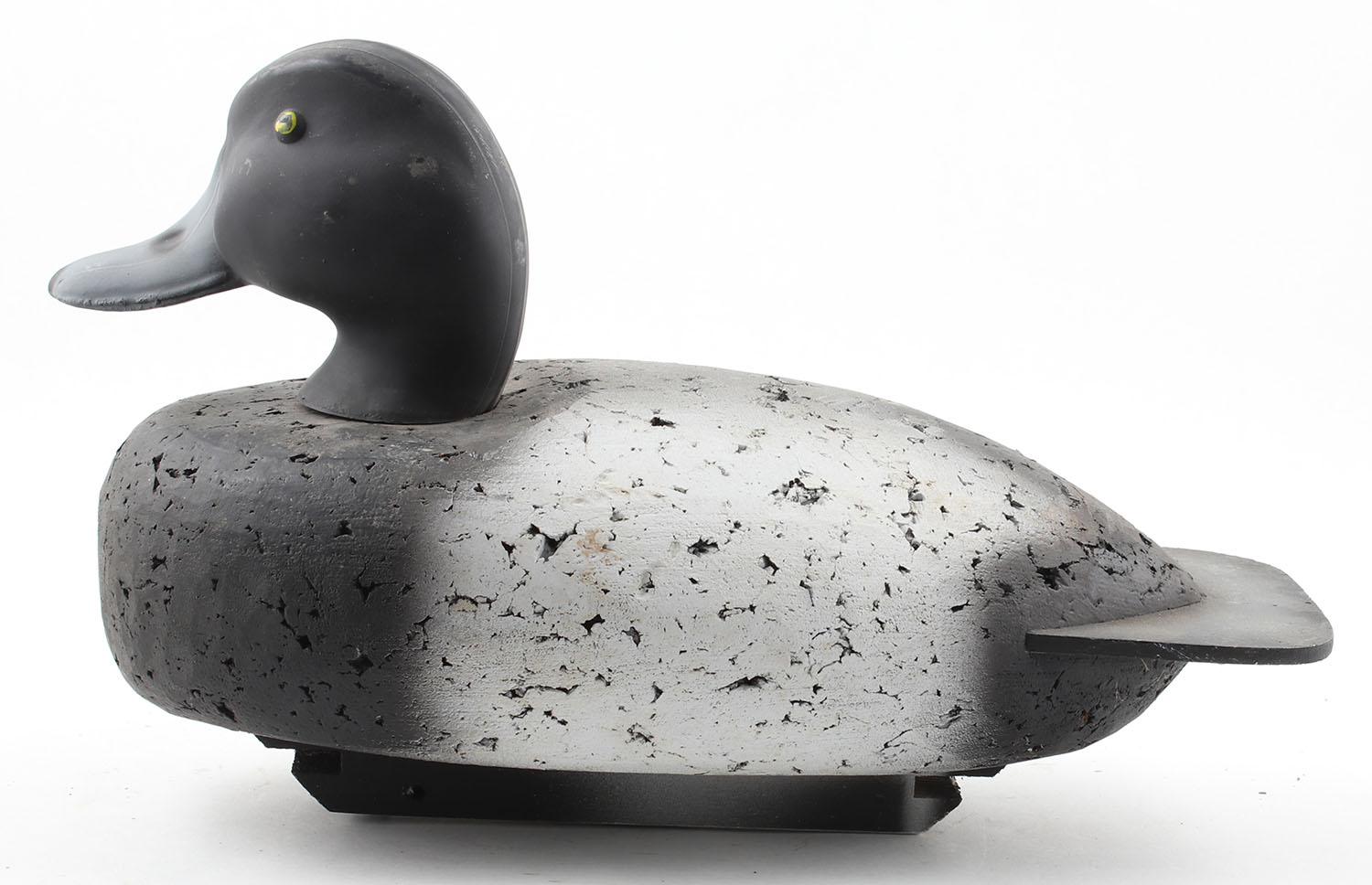 Bluebill Drake by Herter's Decoys, Waseca, MN, raised painted eyes, cork body, original paint, structurally excellent, 16'' OAL. Grade: Excellent - Value: 20 to 200