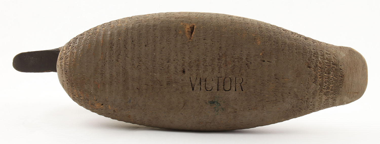 Mallard Hen by Victor, glass eyes, solid wood, original paint, structurally excellent, 17'' OAL. Grade: Excellent - Value: 20 to 40