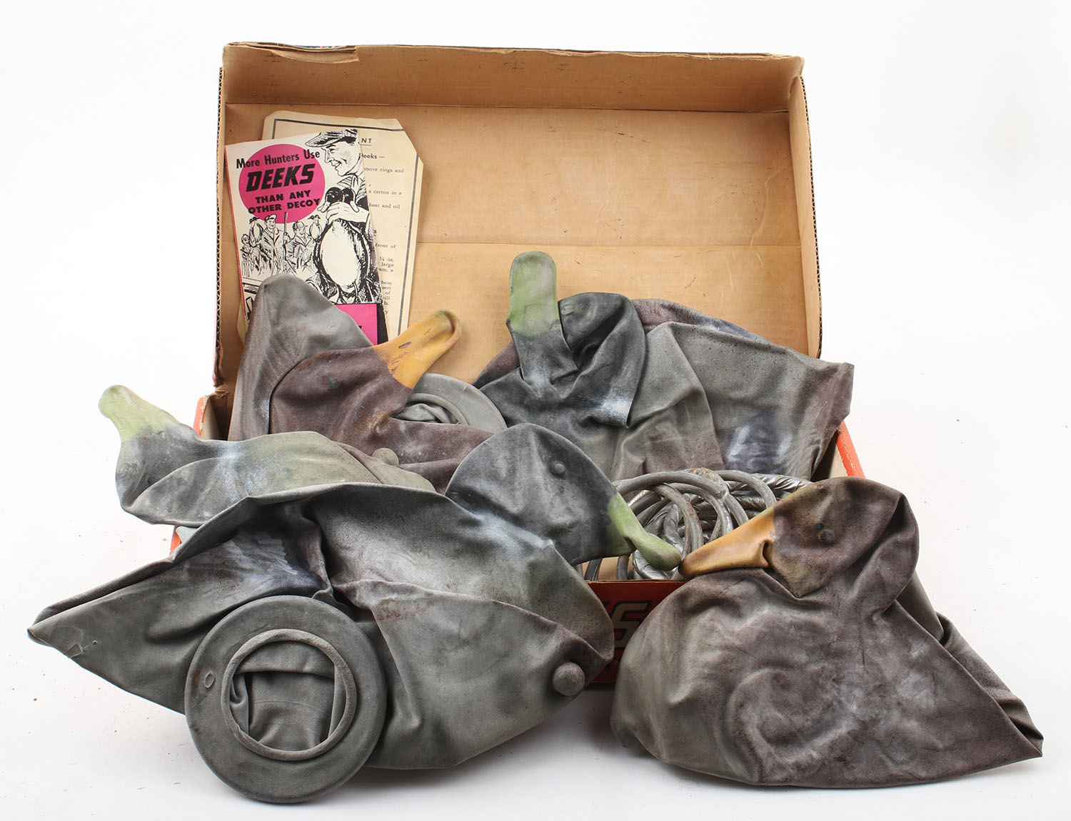 Mallard Decoys by Deeks, 6 rubber decoys & weighted rings, comes in original box with instructions. Grade: Very Good - Value: 10 to 50