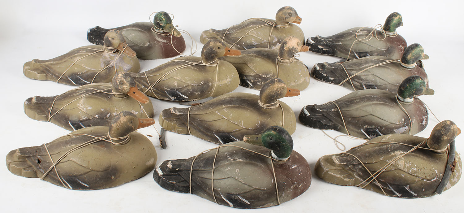 Large lot of utilitarian duck decoys. Grade: Very Good - Value: 2 to 50