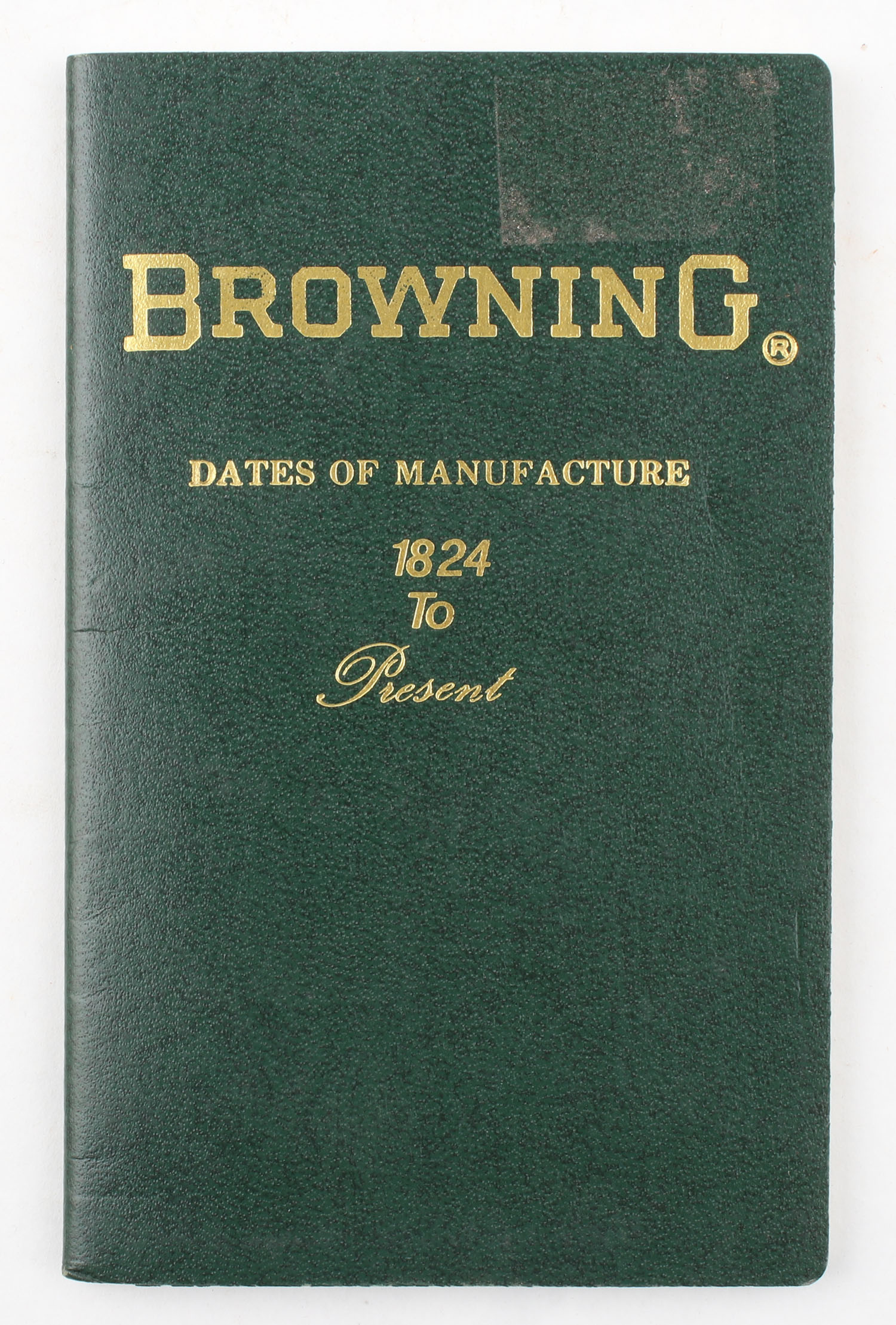 Browning Dates of Manufacture 1824 to Present, 3'' x 5 1/2''. Pages clean, binding tight, softcover very good. Grade: Very Good ++ - Value: 2 to 50