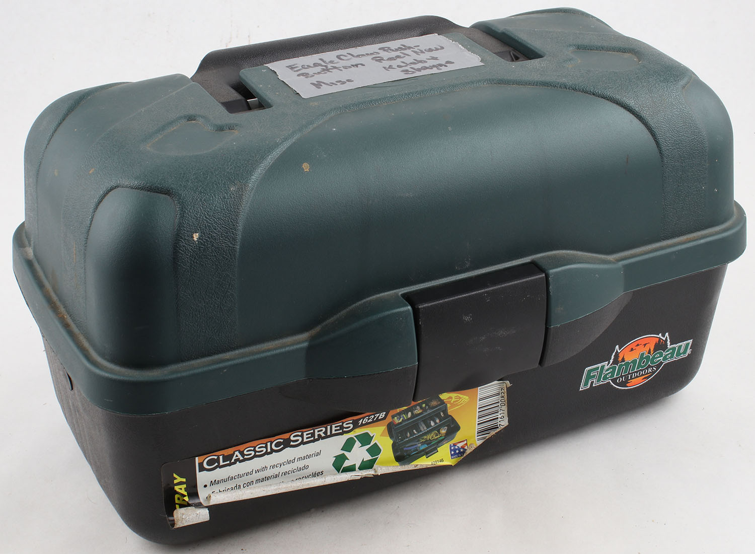 Flambeau Tackle box, plastic tackle box, with an assortment of fishing tackle. Grade: Very Good - Value: 10 to 50