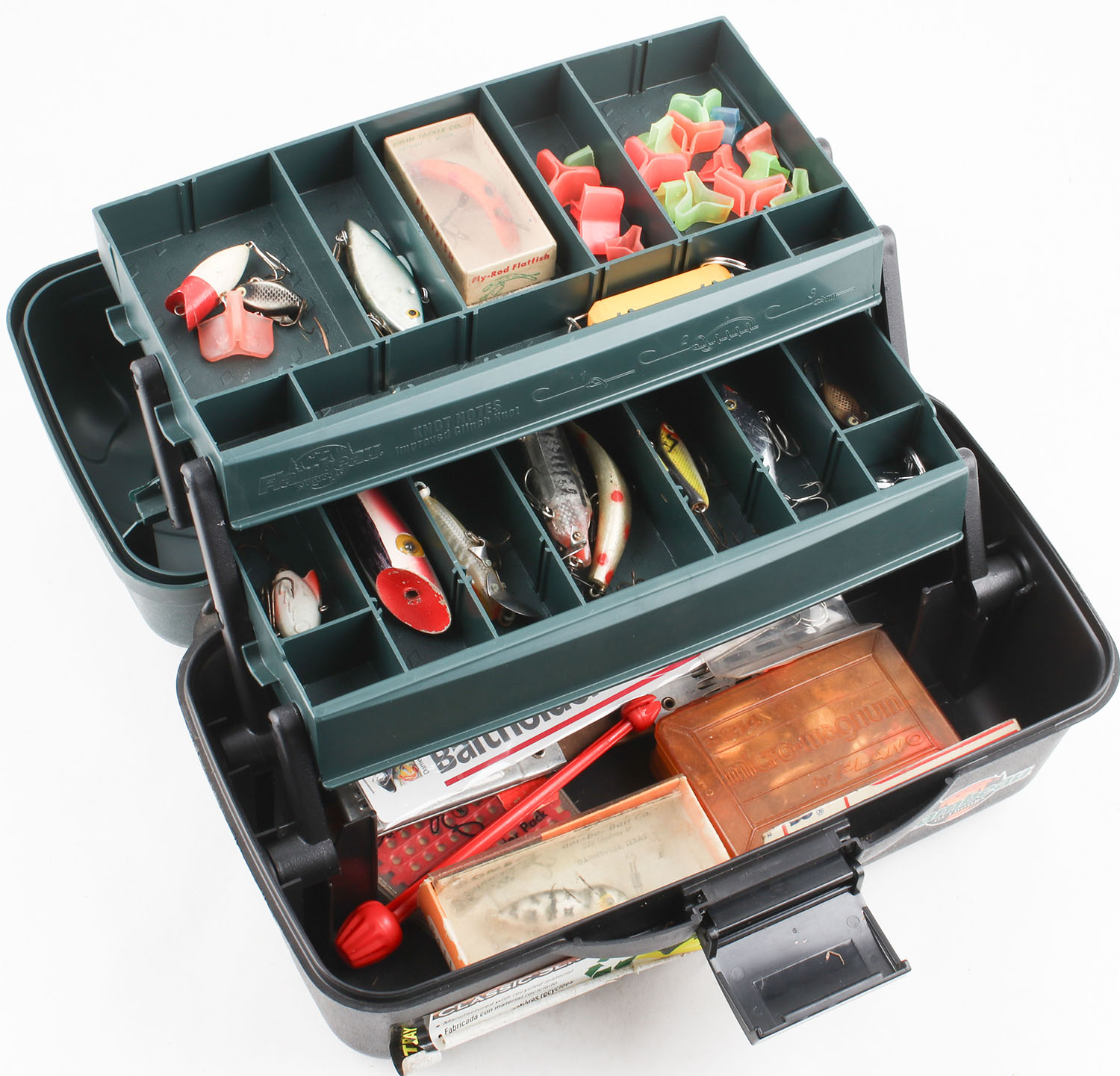 | Flambeau Tackle box, plastic tackle box, with an assortment of f...