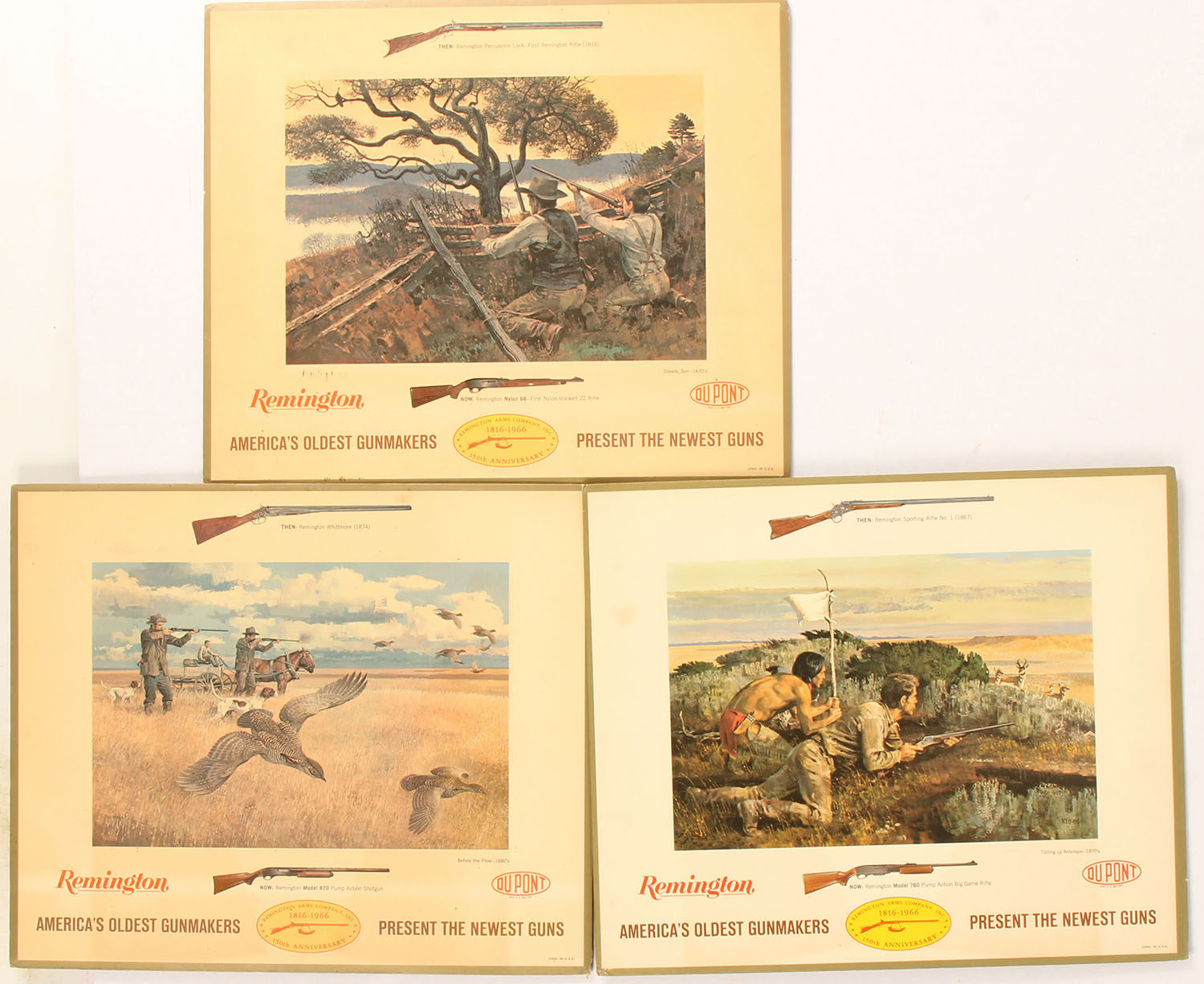 Lot of 3 Remington Diecuts, Steady-Son - 1820's, Tolling Up Antelope - 1870's, Before the Plow - 1880's, some light age soiling, corner wear, all have double easel back, all are 17 3/4'' x 14 3/4''. Grade: Excellent - Value: 20 to 80