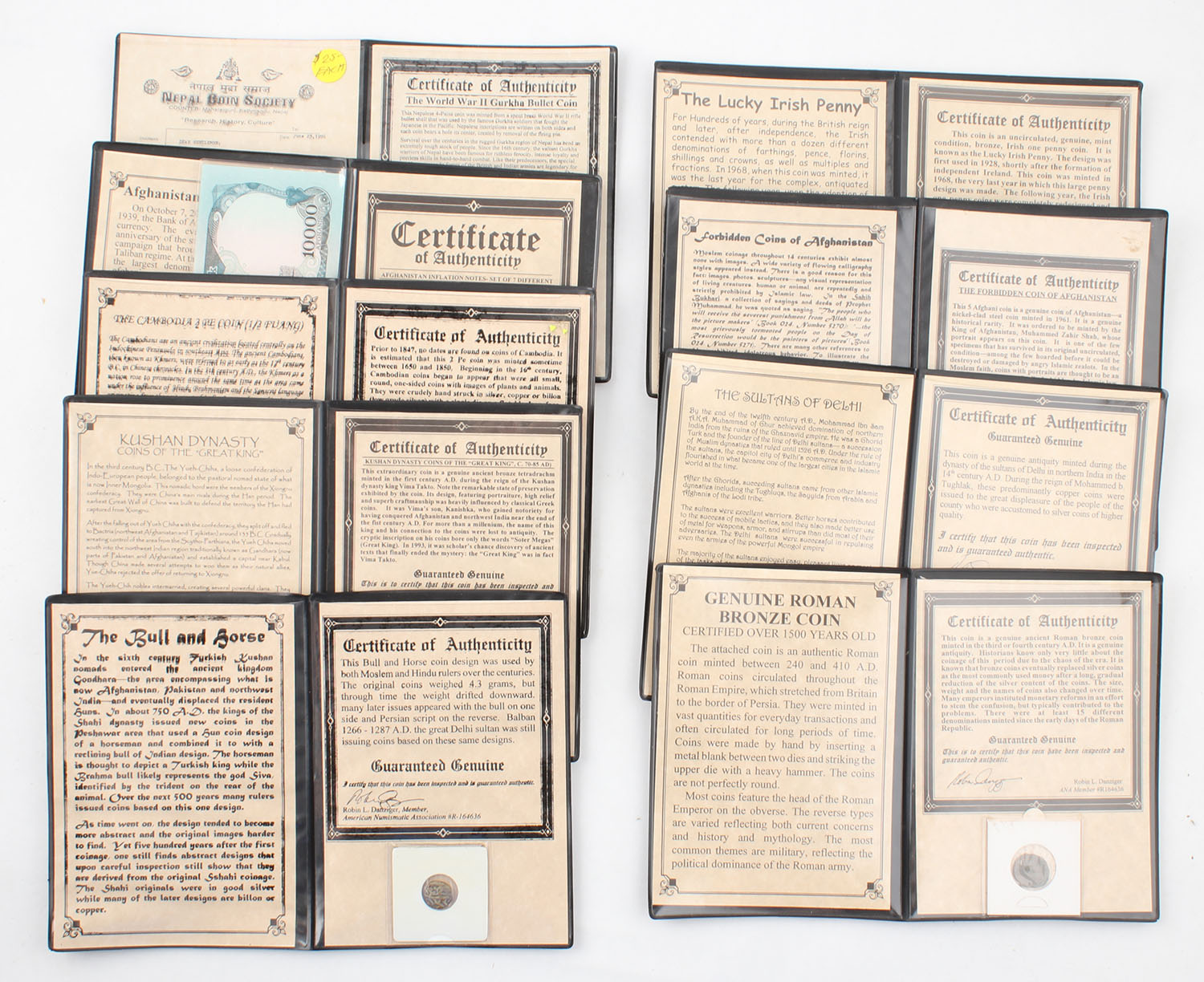 Lot of ancient and old coins WITH Authenticities, Roman, Delhi, Afghanistan, Irish, Turkish, Kushan dynasty, Cambodia, Afghanistan and Nepal. Grade: Excellent - Value: 40 to 200