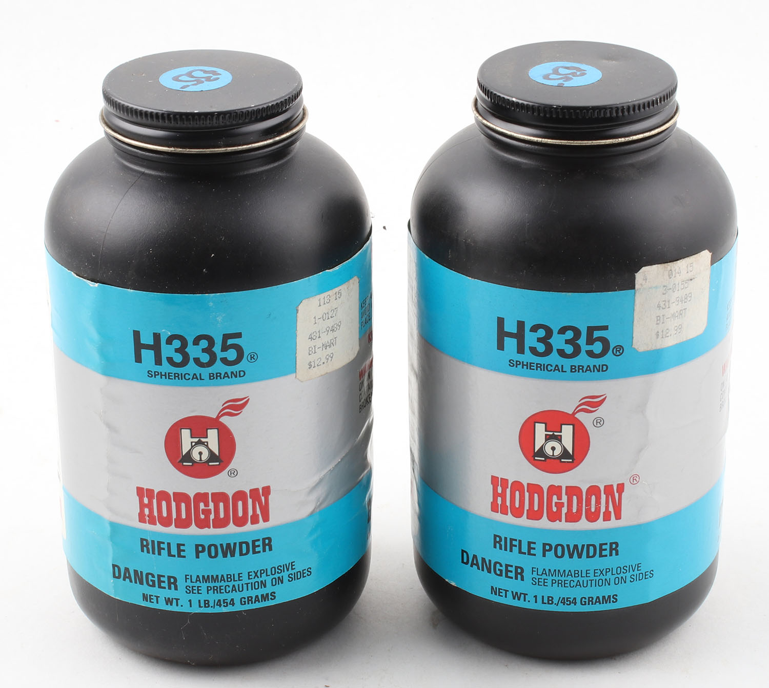 Lot of 2 Hodgdon powder, both nearly full. Grade: Excellent - Value: 20 to 80