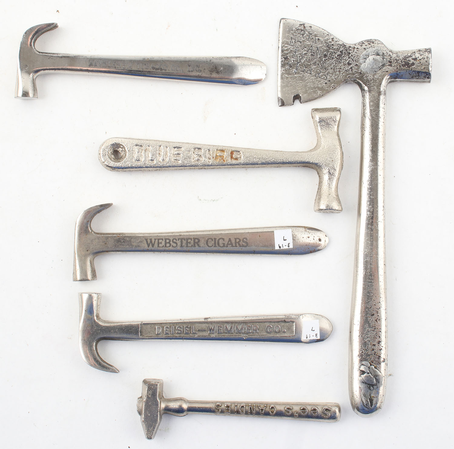 Lot of Small hammers from different cigar/tobacco companies for opening cigar/tobacco tins. Grade: Excellent - Value: 4 to 40
