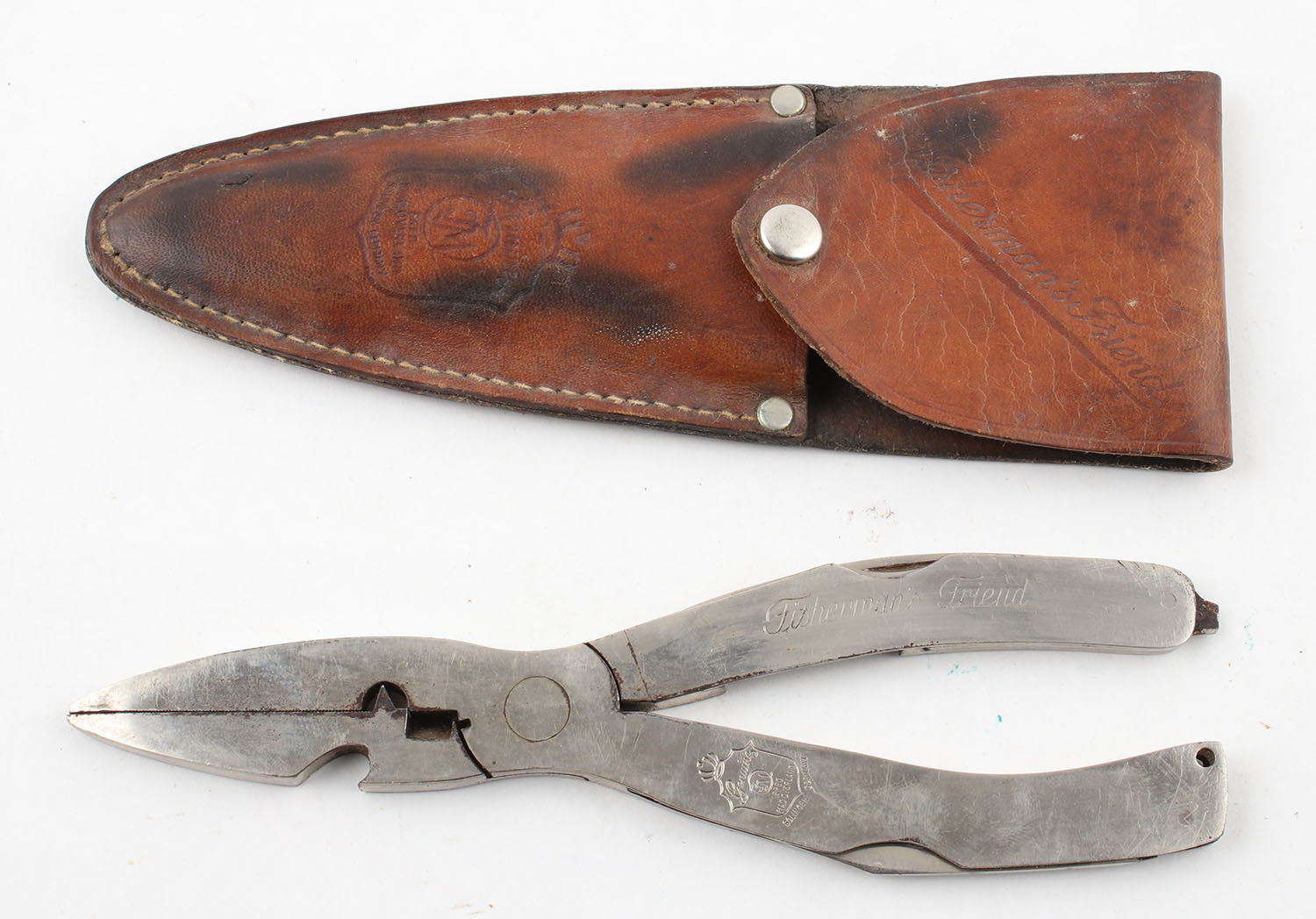 Fisherman's Friend plyers with leather sheath. Grade: Excellent - Value: 10 to 40