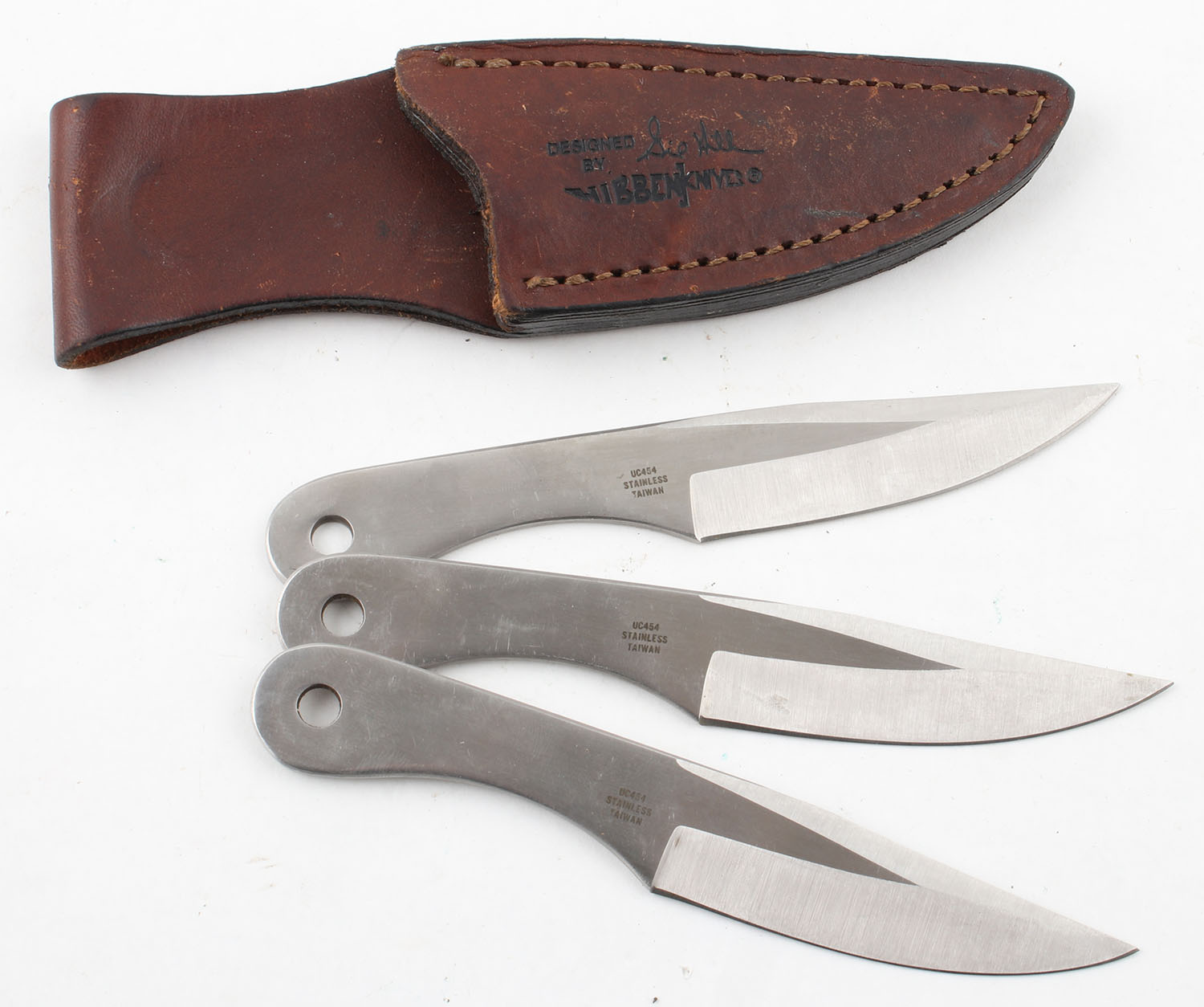 Set of 3 Hibben knives, fixed 3'' blade, has sheath. Grade: Excellent - Value: 16 to 50