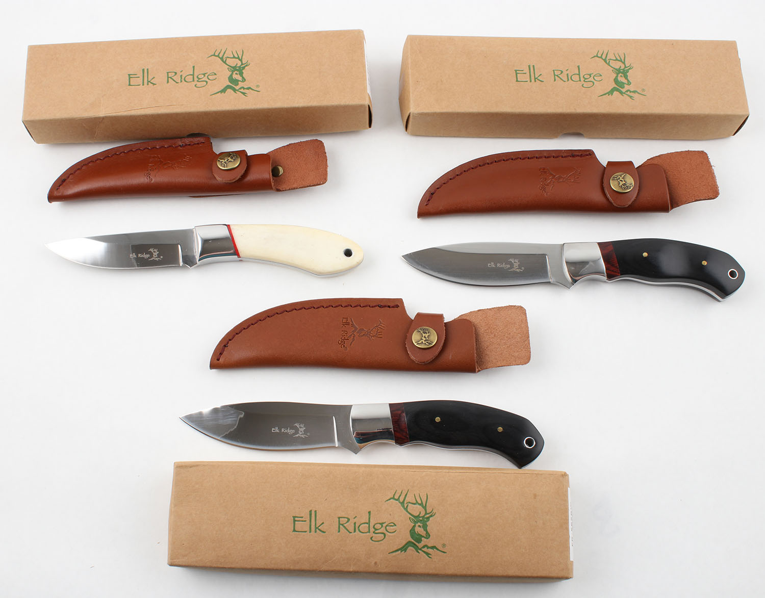 Lot of 3 Elk Ridge knives, in orignal boxes. Grade: Excellent ++ - Value: 30 to 90