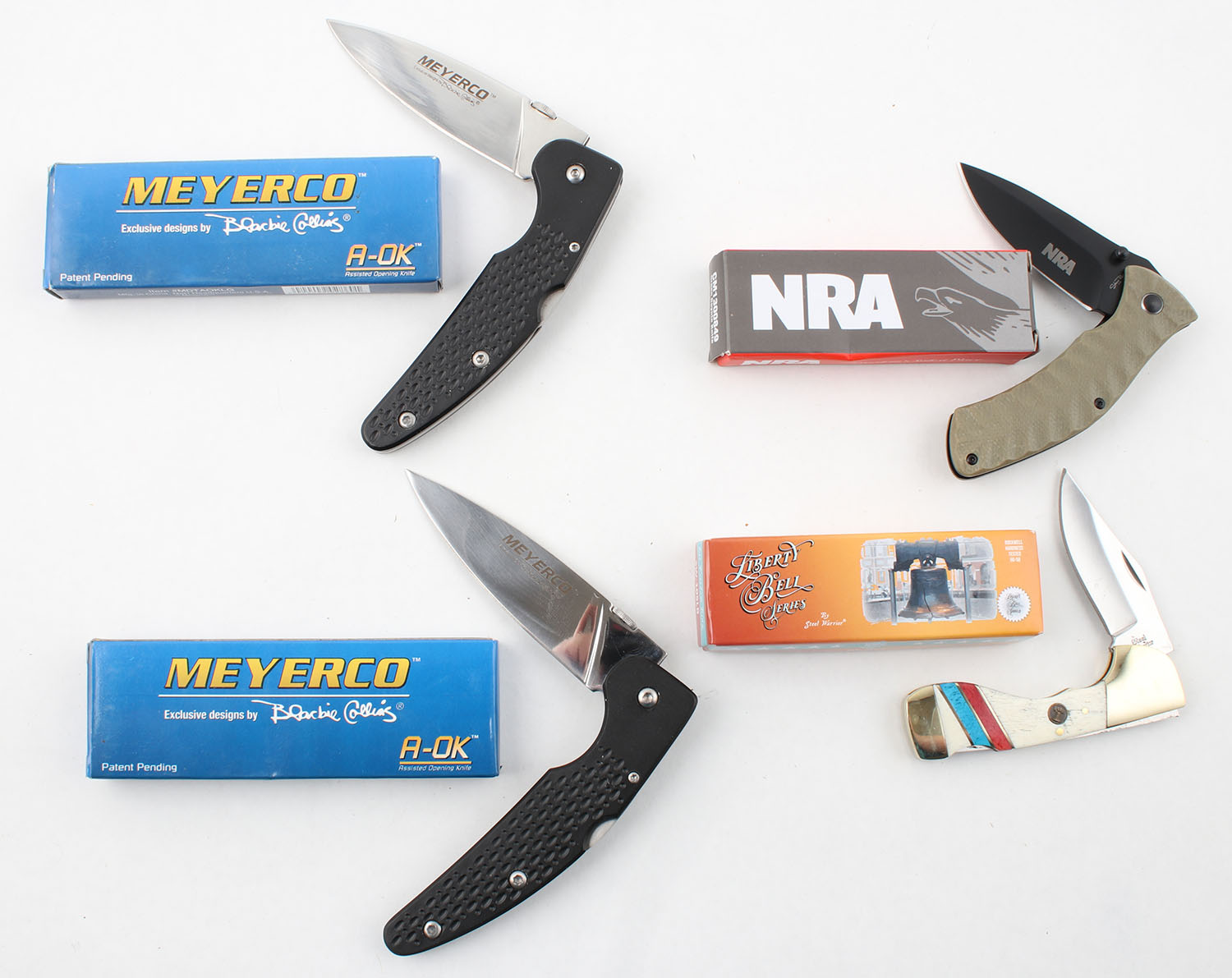 Lot of 4 knives, Liberty Bell series and Meyerco, in orignal boxes. Grade: Excellent ++ - Value: 16 to 50