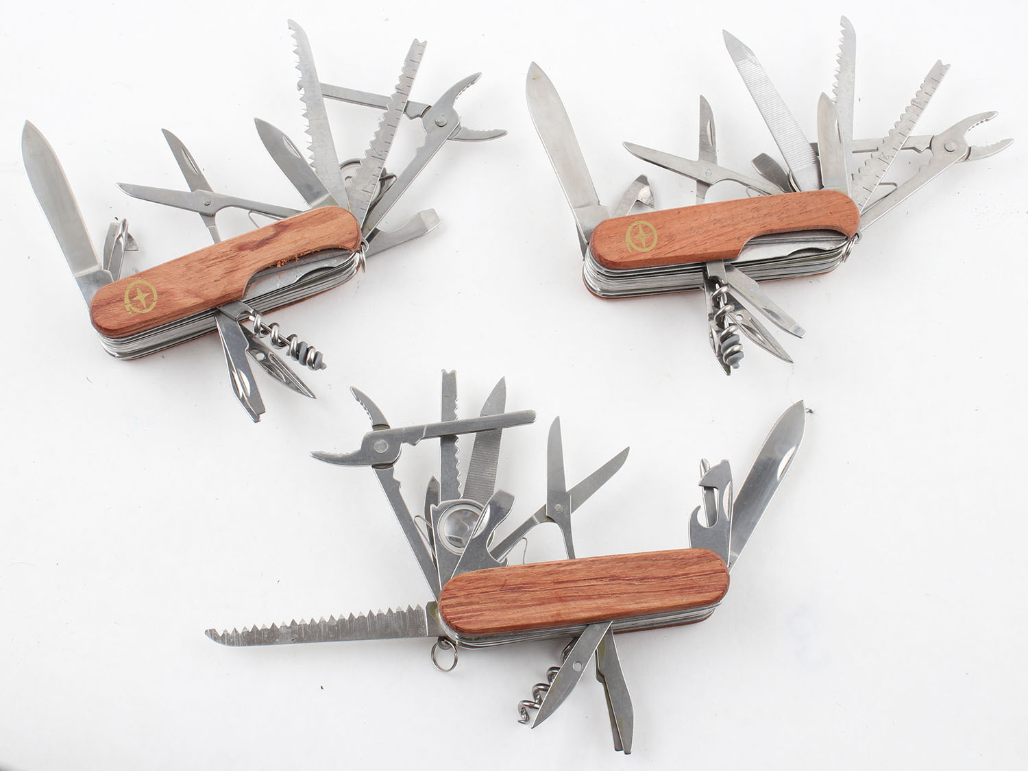 Lot of 3 Superior multi purpose knife, folding blade knives, all solid. Grade: Excellent ++ - Value: 30 to 90