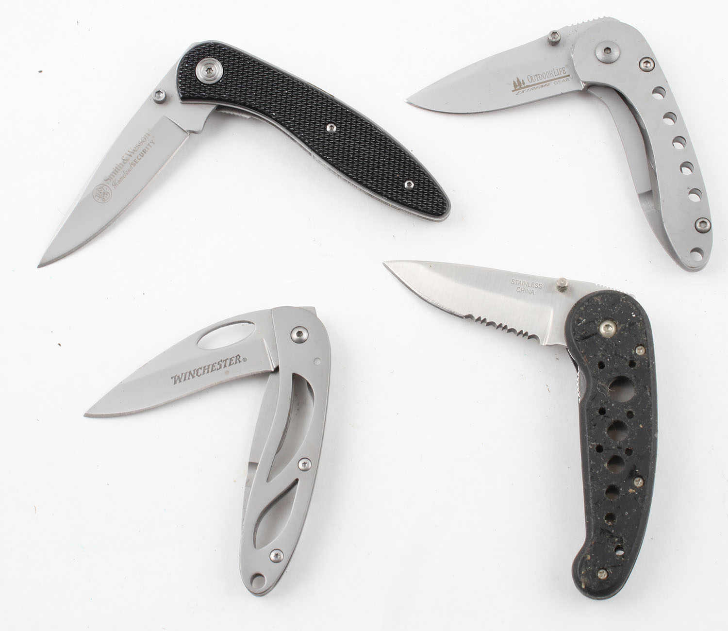 Lot of 4 folding blade knives, all solid. Grade: Excellent ++ - Value: 10 to 80