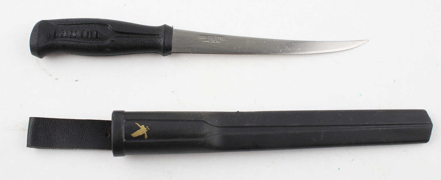 Vintage Sweden Falcon Fish knife Falcon on sheath, 10.5'' OAL. Grade: Very Good ++ - Value: 20 to 40
