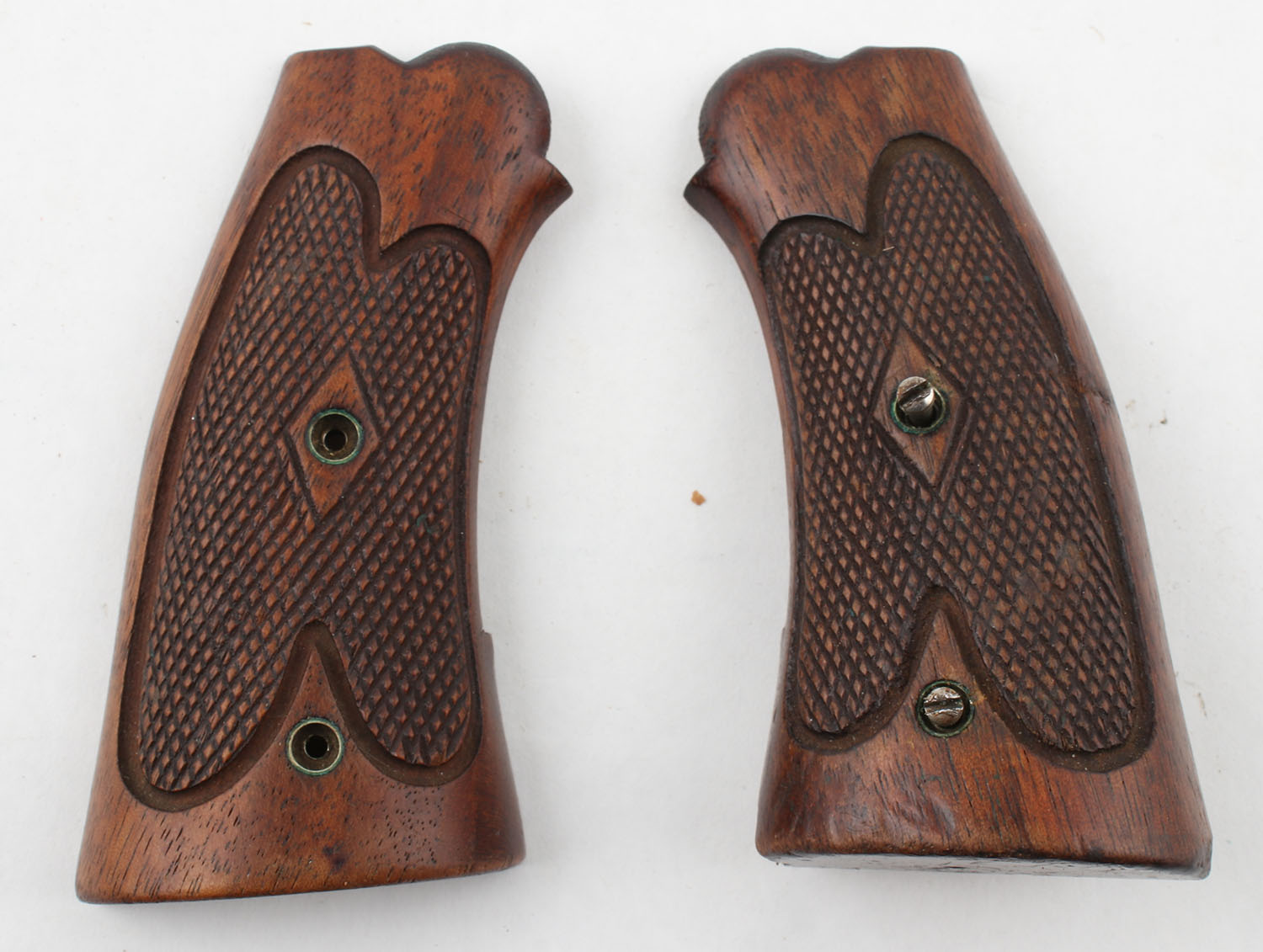 S&W wood pistol grips, 22/32, Bekeart, .22 Rimfire, has screw. Grade: Excellent - Value: 30 to 90