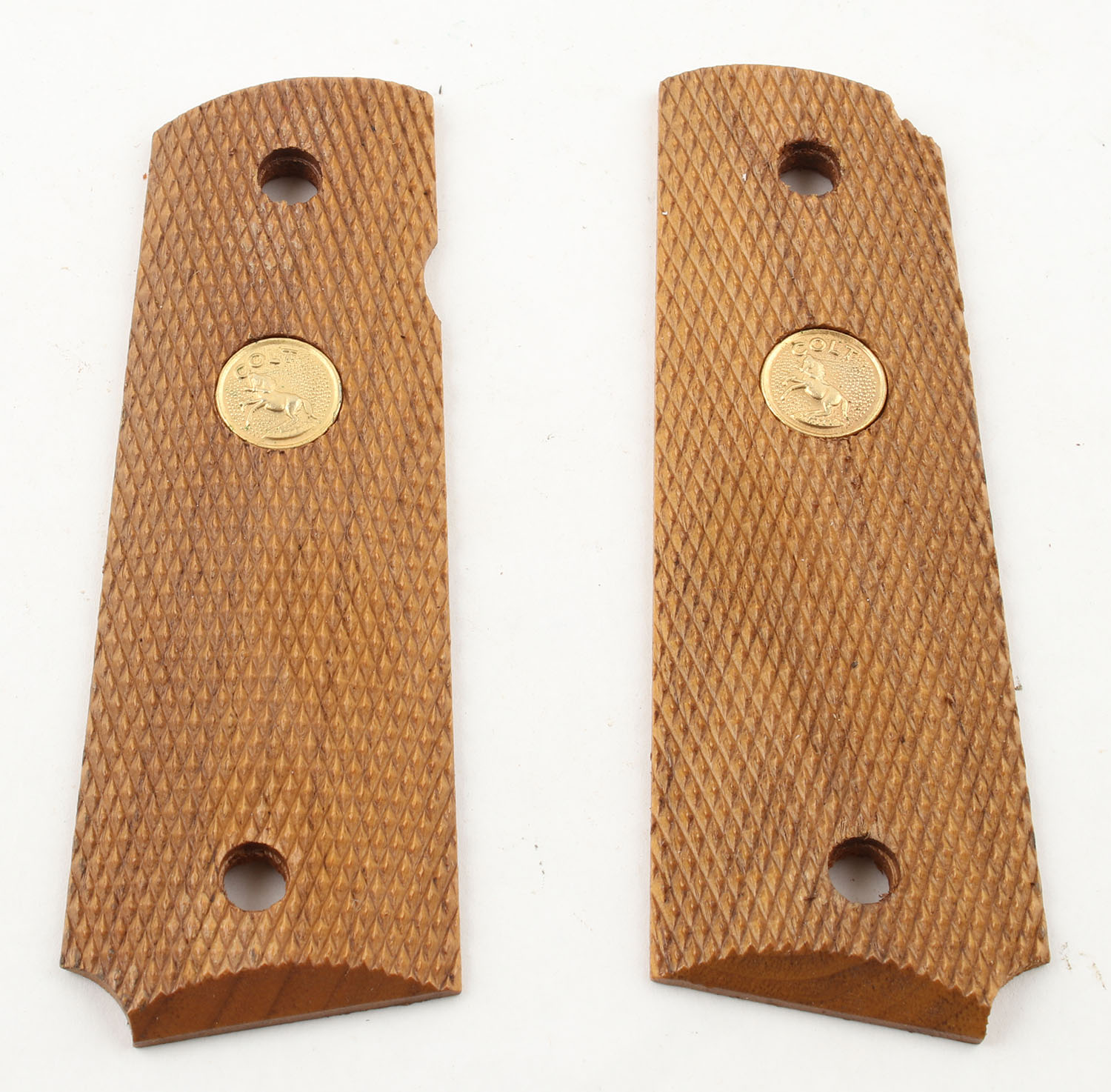 Colt 1911 Checkered wood pistol Grips. Grade: Excellent - Value: 20 to 60