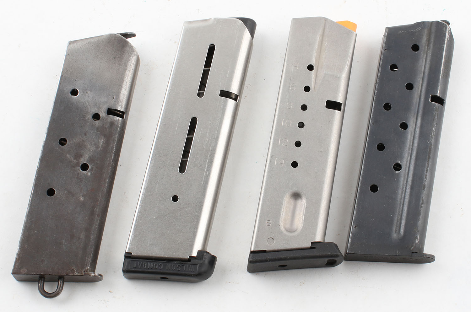Lot of 4 pistol mags, 9mm and 45 cal. Grade: Excellent ++ - Value: 20 to 80