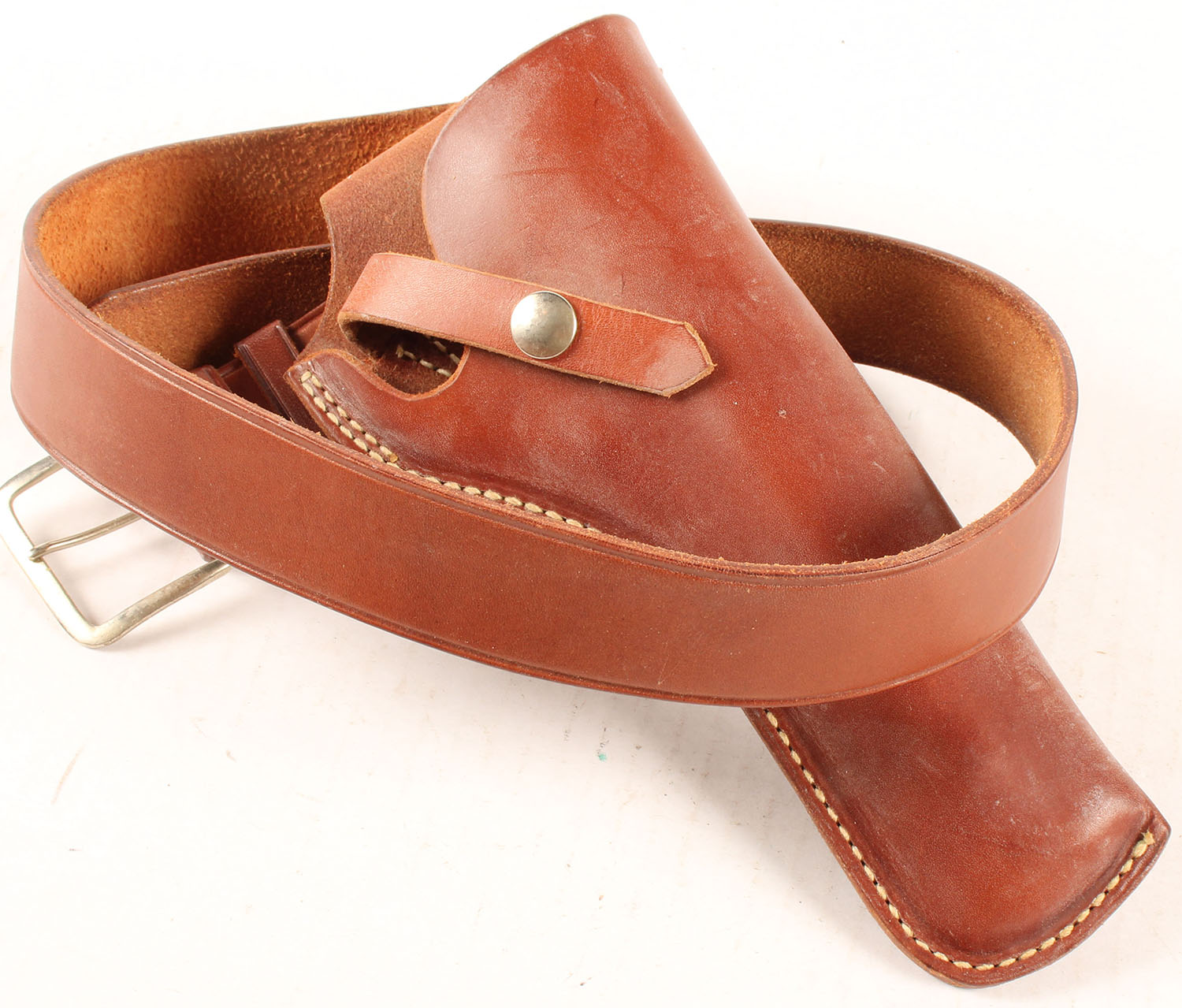 Geo Lawrence leather pistol holster with belt, on holster #656, #28 and #14 and #36 on belt. Grade: Excellent ++ - Value: 30 to 100
