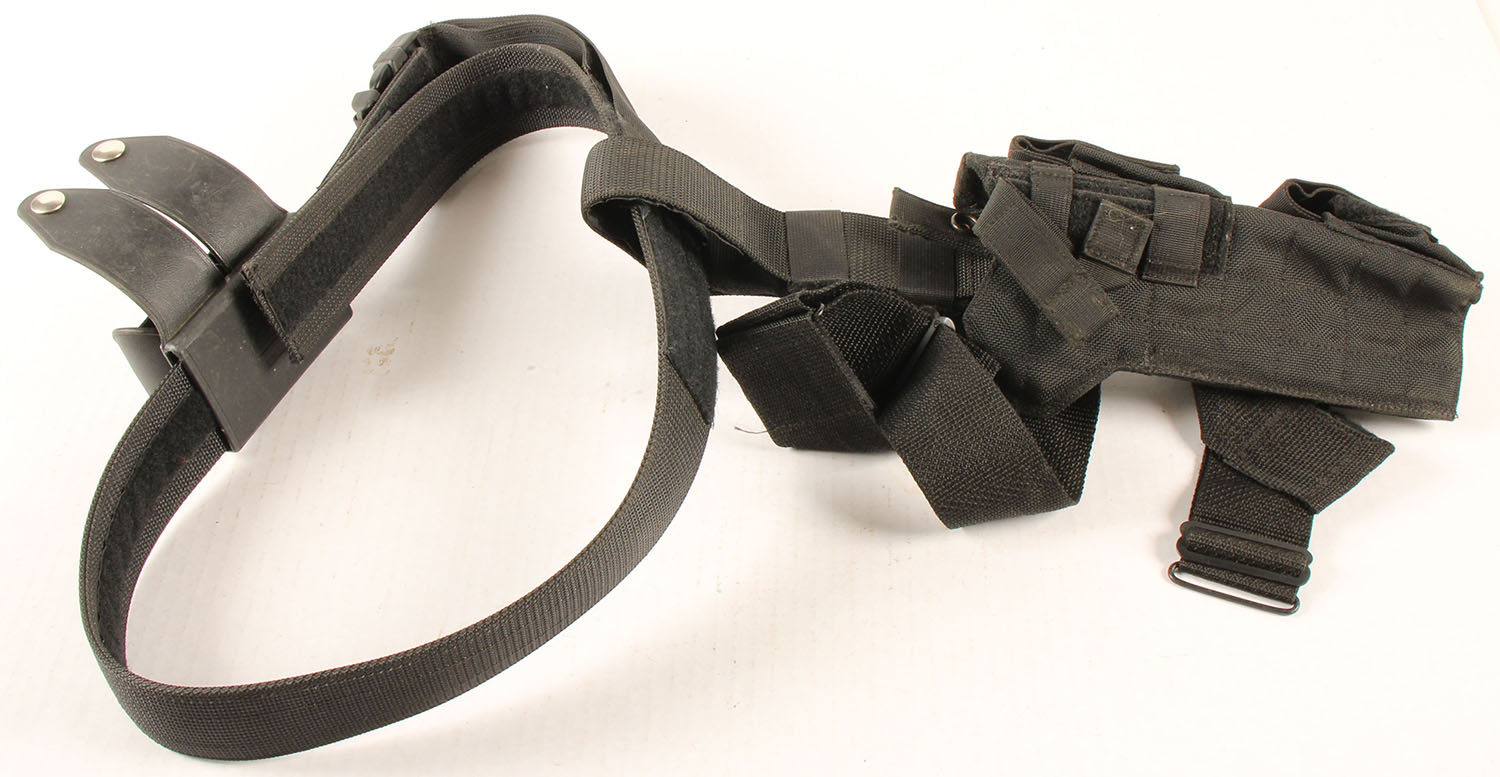 Nylon belt with nylon drop-leg holster & a TWE cell leather revolver speedloaders pouch. Grade: Excellent - Value: 10 to 50