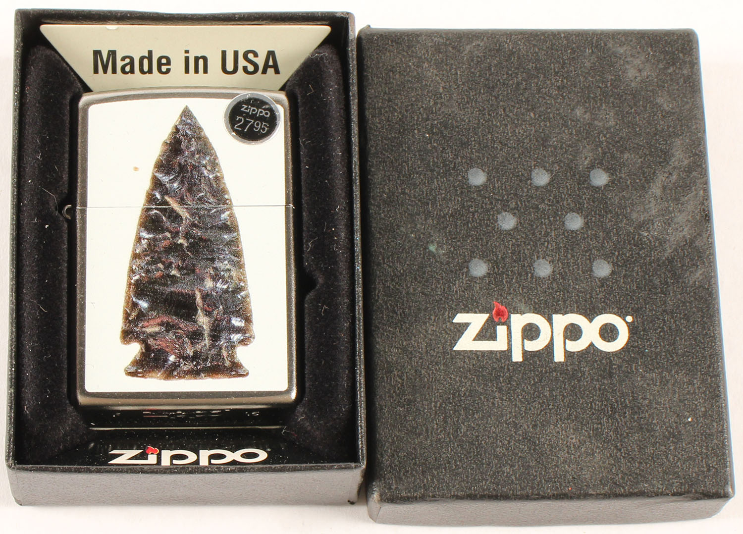 Zippo lighter, image of a obsidian arrowhead, in original box. Grade: Excellent - Value: 4 to 40