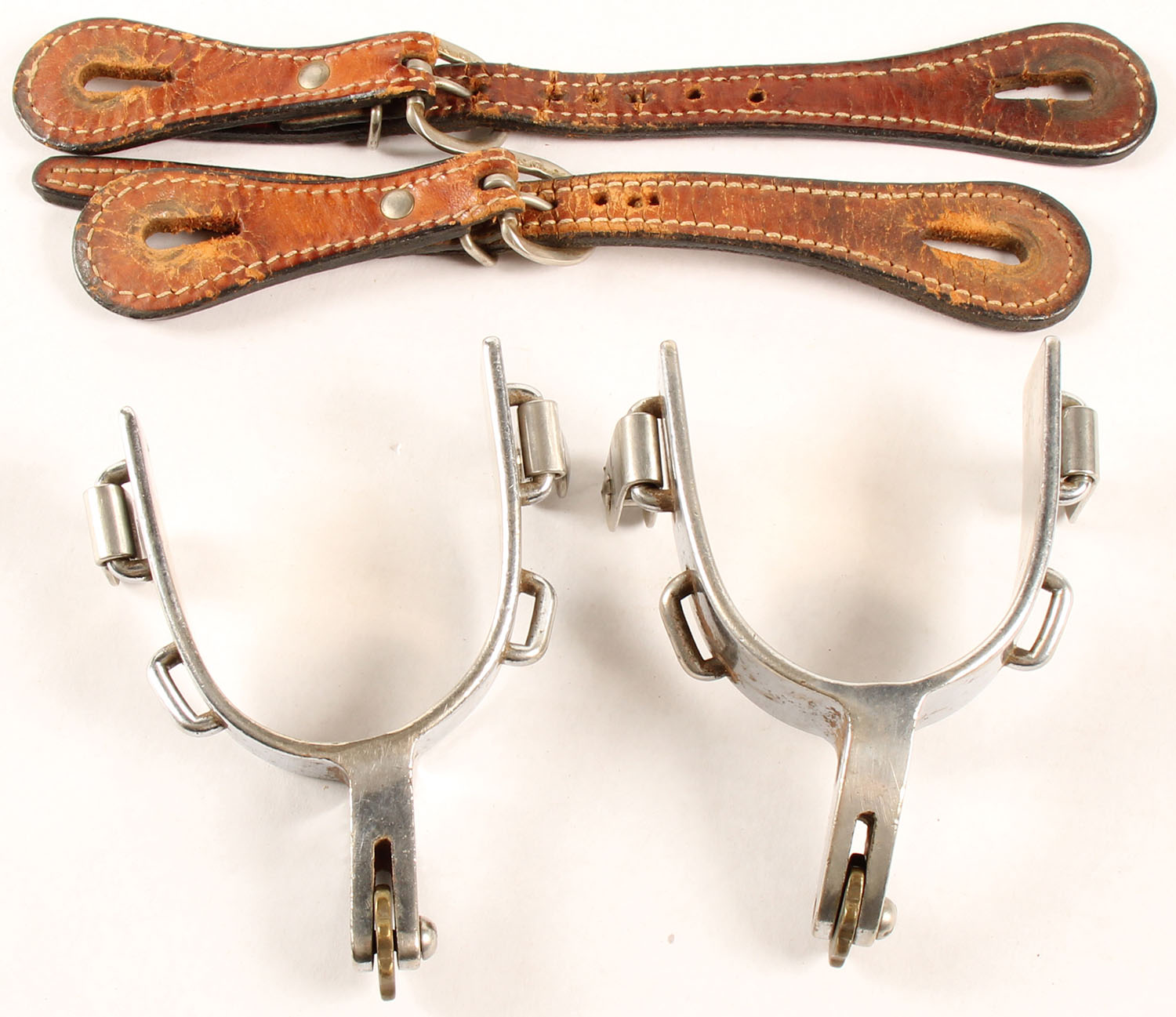 Vintage metal spurs with leather straps. Grade: Excellent - Value: 20 to 100