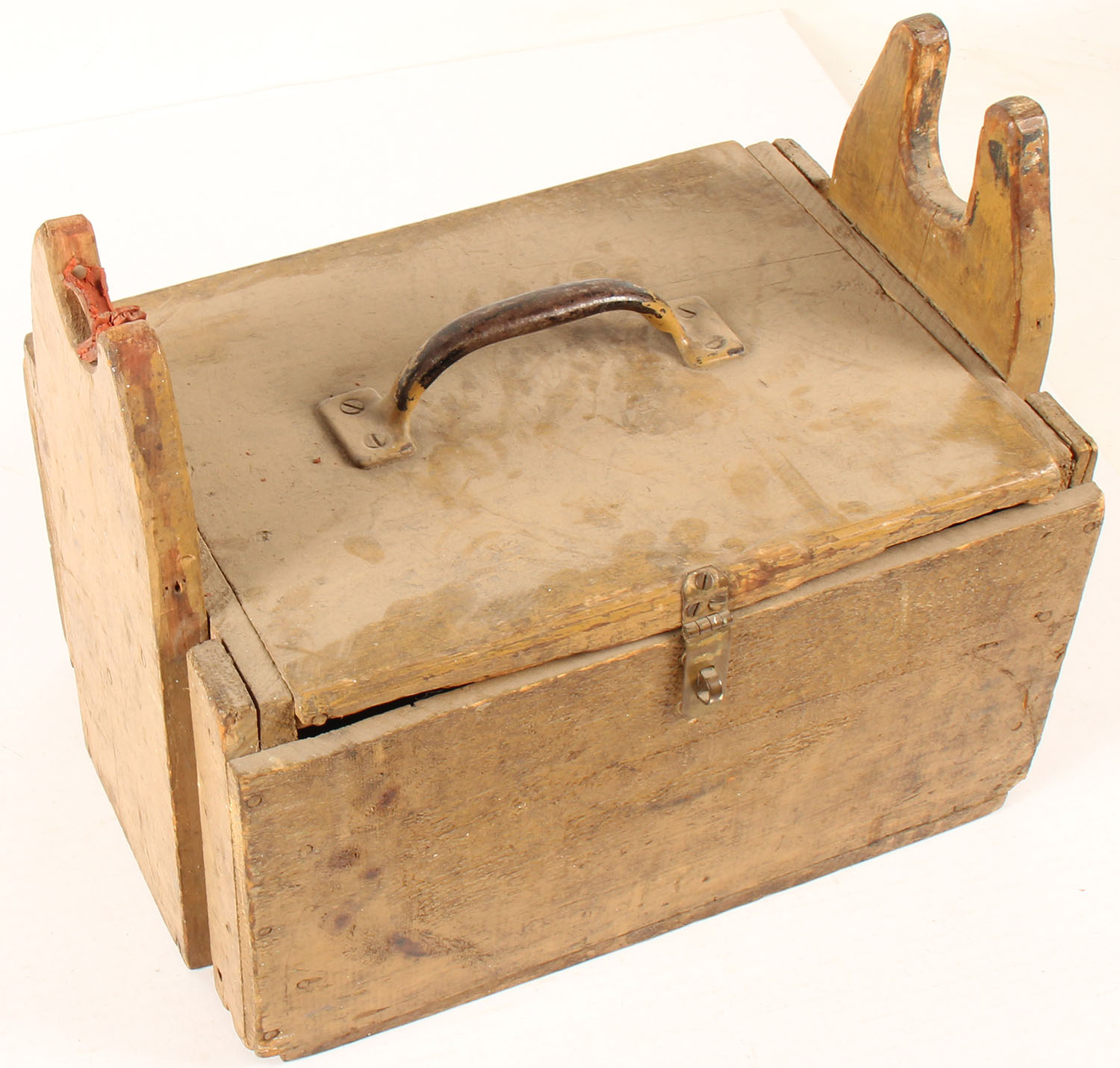 Wood storage box, 15'' x 15'' x 10'', has scuffing and wear. Grade: Very good - Value: 2 to 20