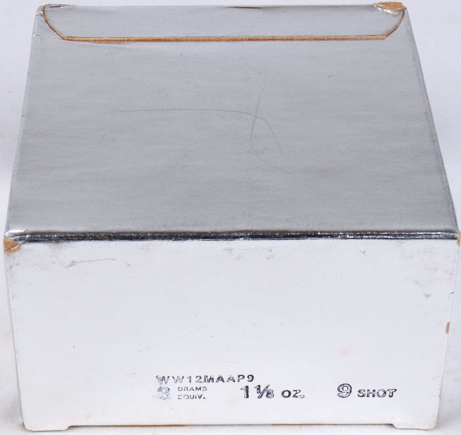 Winchester-Western, AA Plus, Proto-Type Box, to test the silver type finish, 12ga., 1pc., Full, shot size 9 Skeet, Box is very solid with really light scuffing, Shells are excellent. Grade: Excellent ++ - Value: 20 to 120