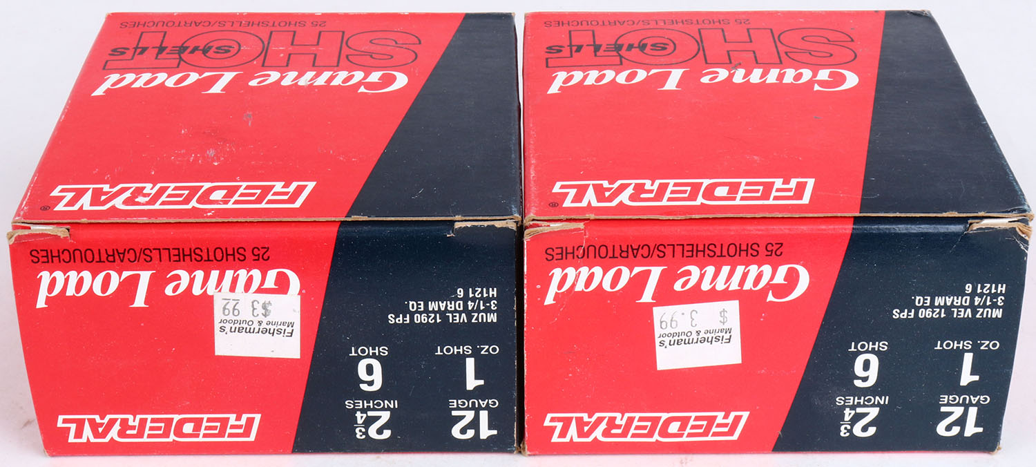 Lot of 2 Federal Game Load, 12ga., 1pc., Appears Full, 2 3/4'', shot size 6, multi-colored box, shells are excellent. Grade: Excellent + - Value: 10 to 20