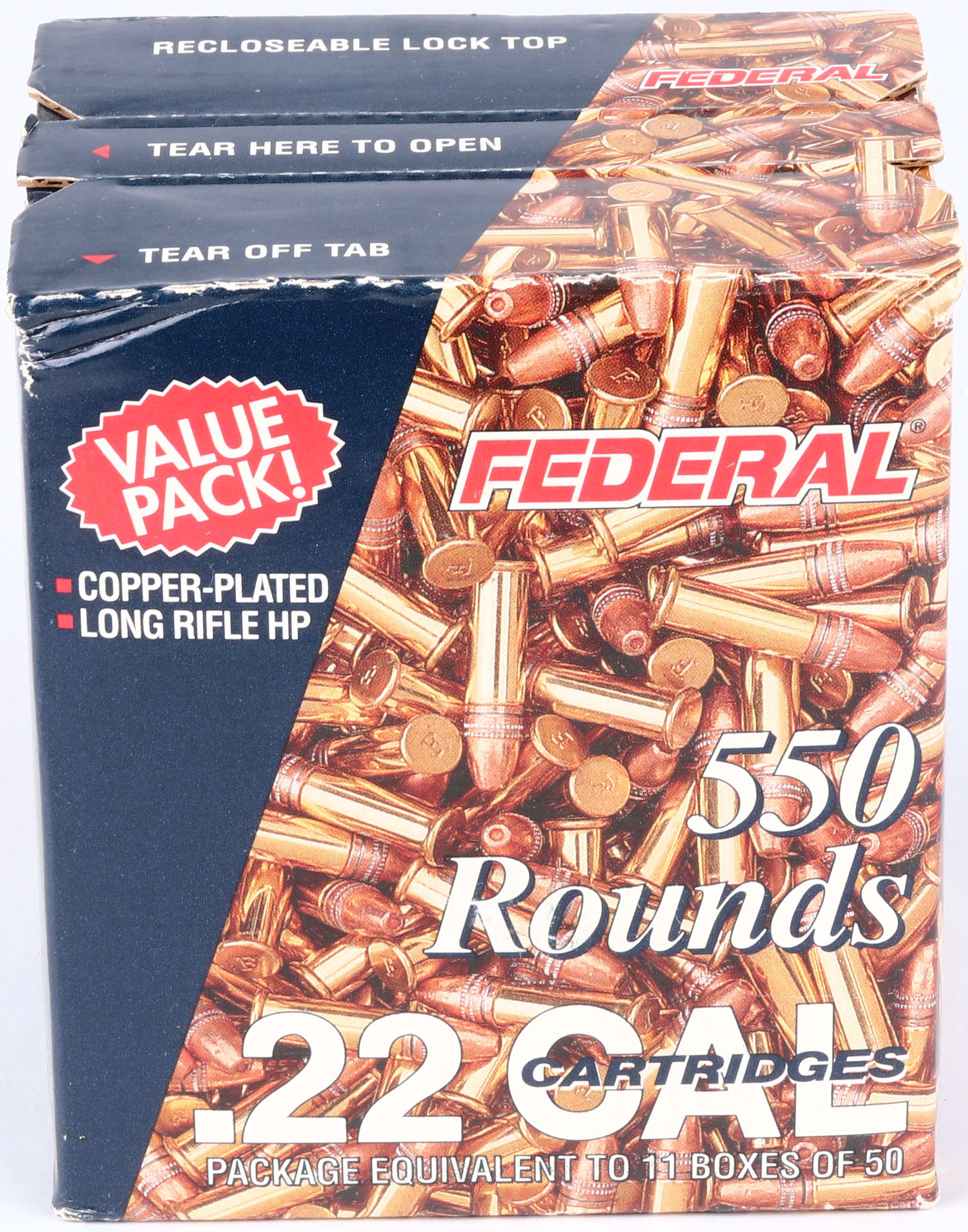 Federal, Value Pack!, .22 Long Rifle Hollow Point, Full & Sealed, 550rds., 1pc. Blue bulk box, box is mint with minty color. Grade: MINT - Value: 20 to 40