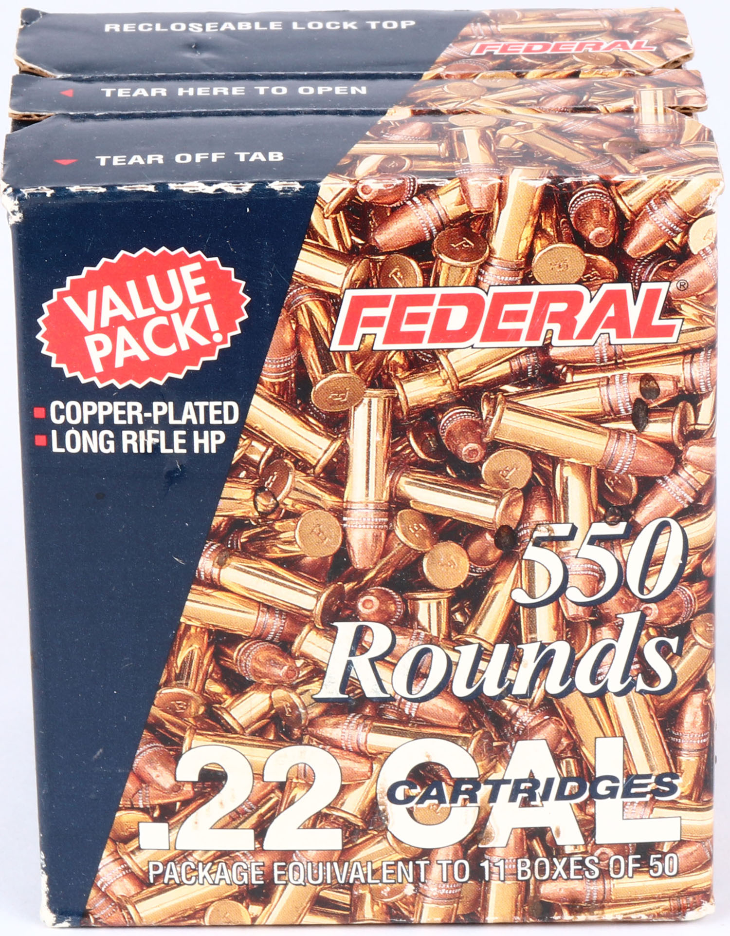 Federal, Value Pack!, .22 Long Rifle Hollow Point, Full & Sealed, 550rds., 1pc. Blue bulk box, box is mint with minty color. Grade: MINT - Value: 20 to 40
